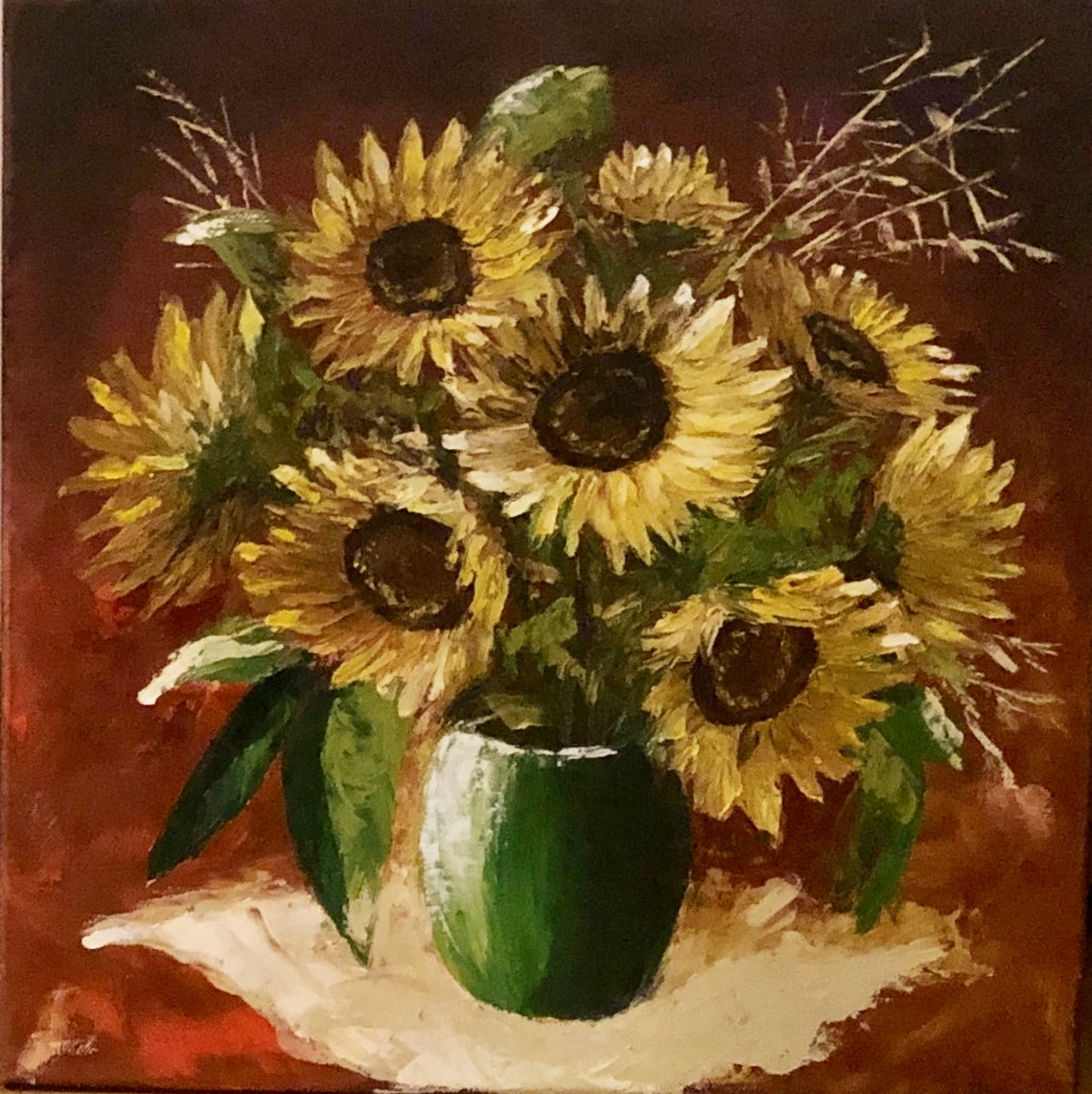 im April vor zwei Jahren habe ich erstmalig eine Leinwand bemalt. Vorher habe ich nur Wände und Zäune angestrichen. Was mir beim Malen fehlt, ist die Leichtigkeit mit der Du malen kannst. Kagi hat es auch drauf. Bei mir ist das anders. Eher so Versuch und Irrtum. Aber mit Ölfarben kann frau ja so lange drüber malen, bis es passt.