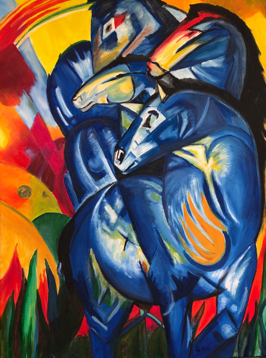 Es ist interessant zu vergleichen, wohin die Reise seitdem gegangen ist. Daher mal ein kleines Update. Bibliothekar hatte seinerzeit ein paar sehr gute Hinweise gegeben. Ich habe inzwischen alles ausprobiert, Landschaften male ich nur selten und höchstens als Hintergrund immer noch genauso spannungslos wie anfangs. Ich habe alle möglichen Meister kopiert, mir eine Ahnengalerie der Familienportraits gemalt und bin am Ende bei den Tierbildern hängen geblieben. Die machen mir am meisten Spaß.