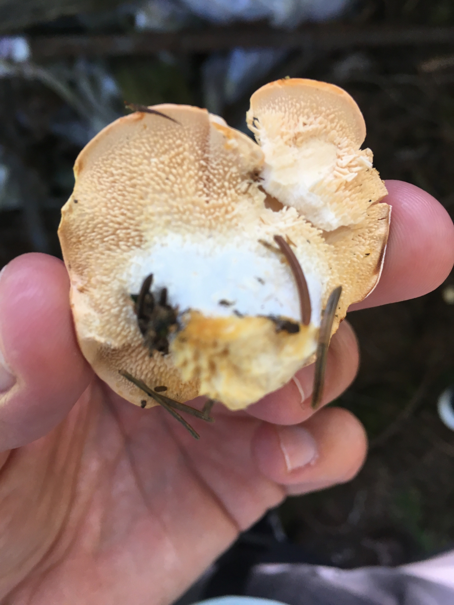 Übrigens: Zu den Standard - Basics für Röhrlingsbestimmungen gehören auch Schnittbilder. die müsssen vollständig sein, und verraten enorm viel über die Identität von PIlzen.Volltsändige Schnittbilder sehen dann so aus wie hier bei Suillellus mendax (Kurznetziger Hexenröhrling):