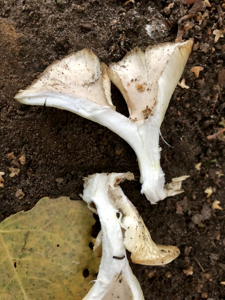 mit dünnen, oft +/- seitlich gestielten Hüten und schlanken aber deutlichen Stielen. Könnte noch ein wenig "löffelförmiger" daher kommen, aber immerhin ein paar der kleineren, jüngeren Fruchtkörper machen das ja gerade, und dafür hat er so ein schönes, beginnendes Gilben von den Huträndern her.