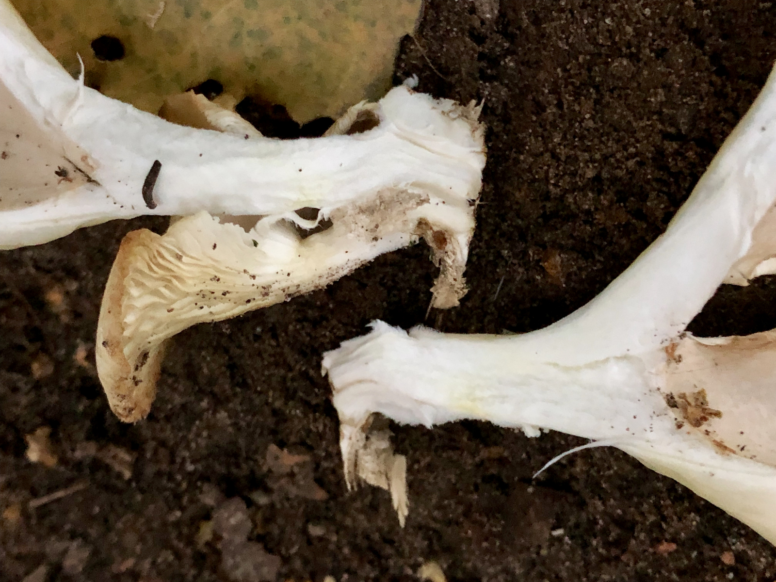 mit dünnen, oft +/- seitlich gestielten Hüten und schlanken aber deutlichen Stielen. Könnte noch ein wenig "löffelförmiger" daher kommen, aber immerhin ein paar der kleineren, jüngeren Fruchtkörper machen das ja gerade, und dafür hat er so ein schönes, beginnendes Gilben von den Huträndern her.