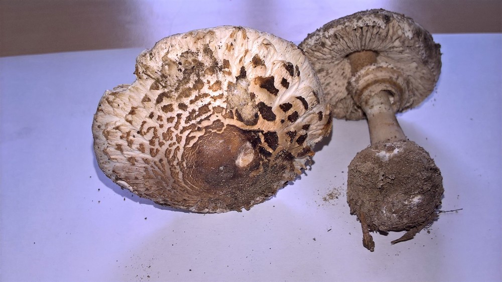 wir hatten noch bis vor kurzem große Hitze und Trockheit. Da machen Pilze manchmal sehr komische Sachen. Ich halte diese "Natterung" für einen Trockenschaden, möchte allerdings aber auch nicht zu 100% ausshließen, dass Veronika einen sehr untypischen Macrolepiot gefunden hat. Eine mikroskopische Untersuchung könnte ggf. bei der Bestimmung hilfreich sein. Am einfachsten wird aber sein, wenn Veronika den Fundort in den nächsten Tagen noch mal aufsucht und ggf. frischere Exemplare zeigt.