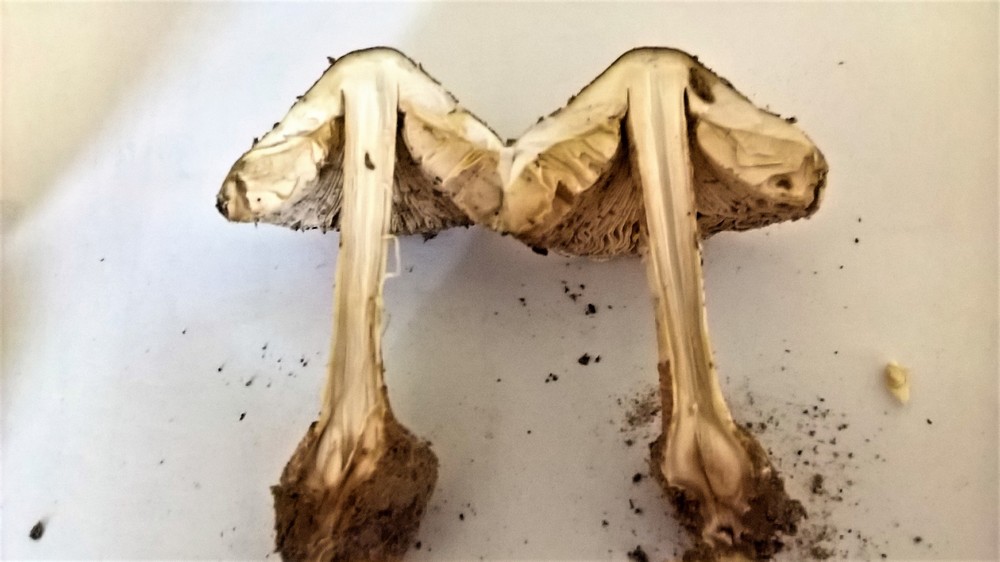 Nach dem Schlüssel gingen Stielnatterung und die Gattung Chlorophyllum nicht zusammen. Kann die im oberen Teil so deutlich ausgeprägte Natterung denn ein Trockenschaden sein? Ich kann mir das gar nicht recht vorstellen.