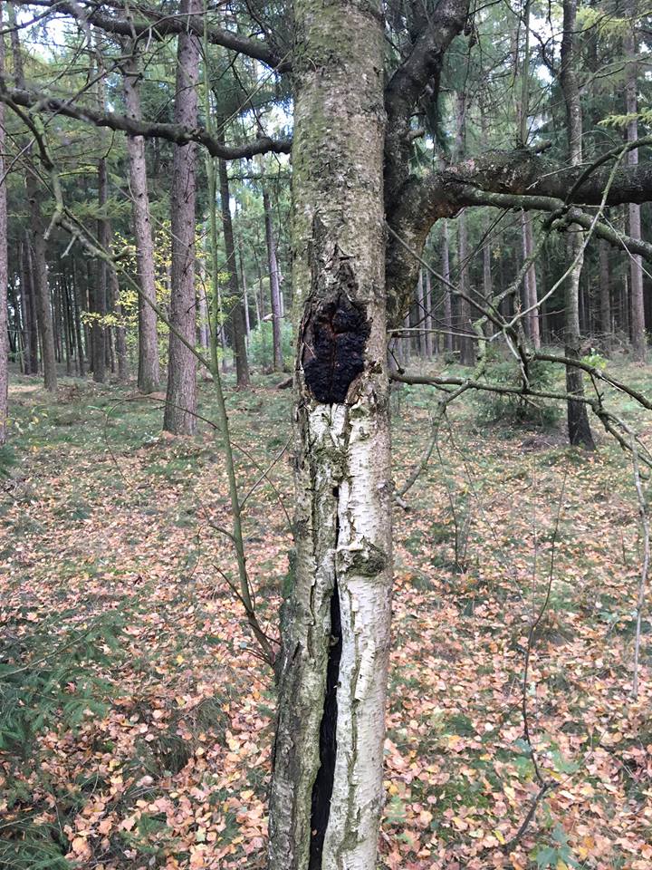 Nun denn, heute kam ich vom Pilzsammeln heim, hatte nur ein paar Maronen und Birkenporlinge im Körbchen und war froh, das es hier im Norden nach der Dürre nun doch endlich mit Pilzen losgeht. An einer Birke entdeckte ich dann ein seltsames Gewächs, welches ein schiefer Schillerporling sein könnte? Der Baum ist eine Birke, das Gewächs ist in ca. 4 m Höhe,sieht verkohlt aus, ca. 20-25 cm lang und ebenso breit. An der Seite ist noch ein etwa 15 cm langes Gewächs. Es ging schon Richtung Dämmerung, von daher hoffe ich das die Bilder einigermaßen tauglich sind.