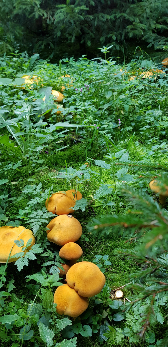habe heute beim Pilzesuchen ein Feld mit ca 30 Knallgelben Pilzen gefunden, welche ich nicht bestimmen konnte. Kann mir wer helfen? Gefunden habe ich sie zwischen jungen Fichten im Moos bei Brennesseln und Löwenzahn, Hutdurchmesser ca 8cm bis ca 25cm. Der Hut war samtartig und trocken. Lamellen und Stiel hatten gleiche Farbe wie der Hut, Fleisch weiss. Der Stil hatte bei den bereits offenen Pilzen auch einen Ring.