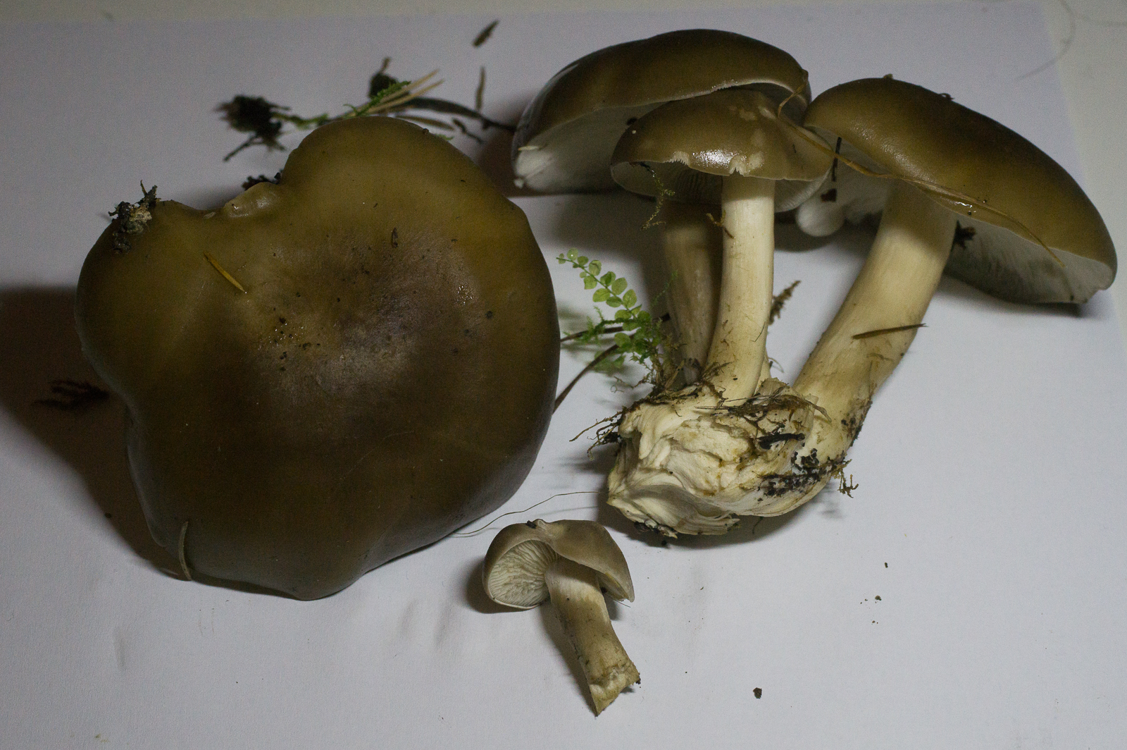 5. Und der letzte. Gefunden am Wegrand neben zwei ollen Schopftintlingen. Ich tendiere hier stark zu einem Rasling, womöglich der Gepanzerte? Nie gesehen bisher, wäre ein Erstfund. Gibt's da relevante Abgrenzungsmerkmale? Auffällig sind die weißen Stellen an der Stielspitze. Ist das das Sporenpulver? Hübscher, fester Pilz auf jeden Fall.