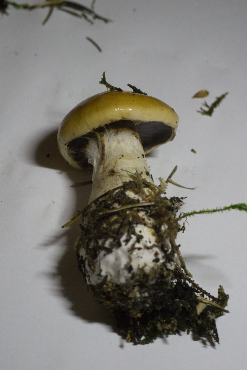 Ziegelgelber Schleimkopf? Kalkboden, Nadelwald mit Fichten. Schleimiger Hut, lila Lamellen. Hat der ein Alleinstellungsmerkmal? Oder ist das wieder so ein Cortinarius Spec.-Fall?