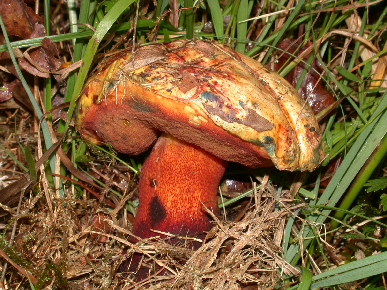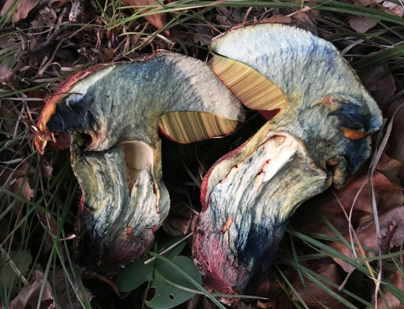 im schnitt ist das fleisch sowohl im hut als auch im stiel stark blauend.