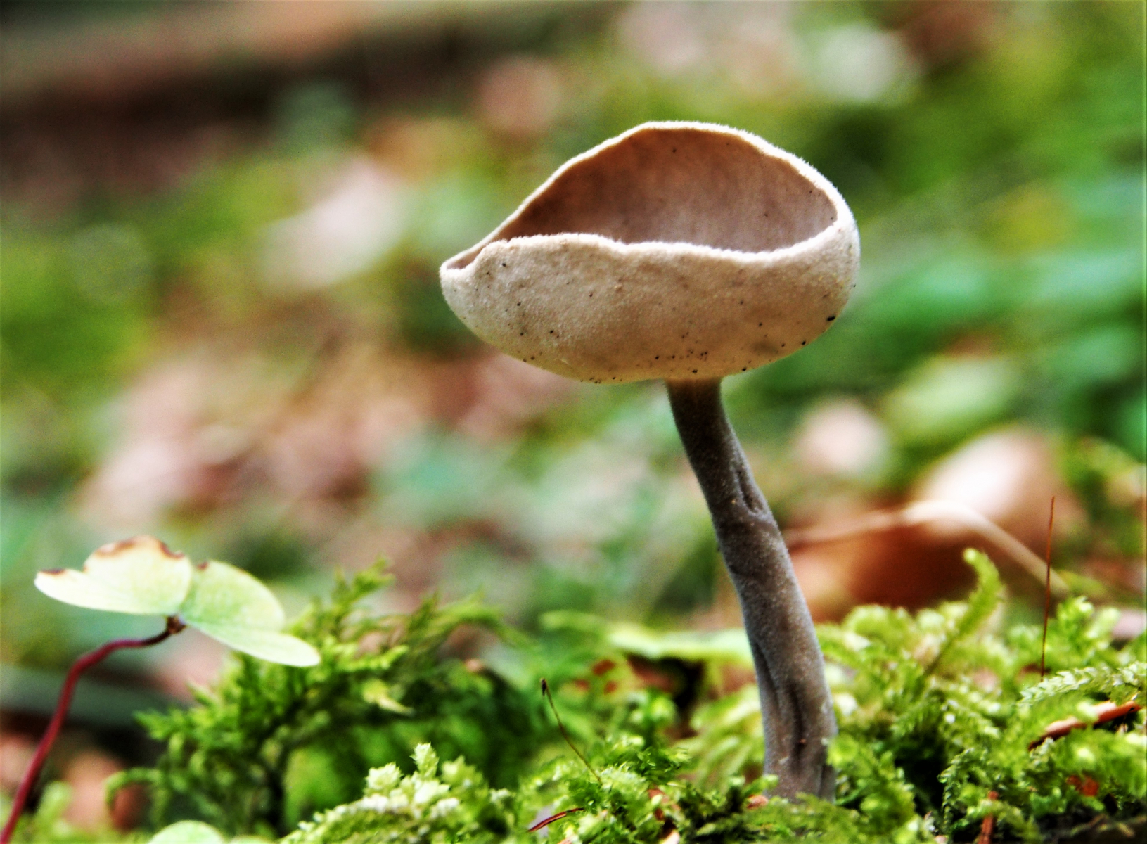 Becherlorchel (Helvella macropus). Passt das? Verwechslungspartner wäre ja der Filzige Langfüßler, soweit ich gesehen habe. Aber der scheint mir von der Farbe her etwas dunkler zu sein.