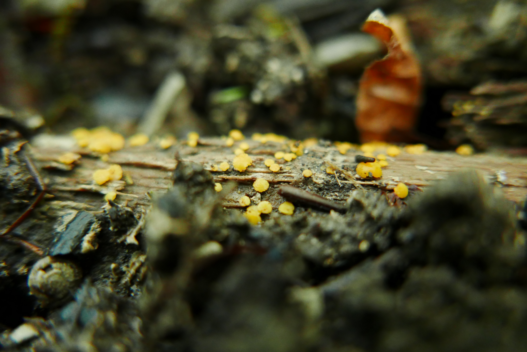 Übrigens habe ich unter den anderen Bilder auch noch den Gelbmilchenden Helmling, Mycena crocata gesehen.