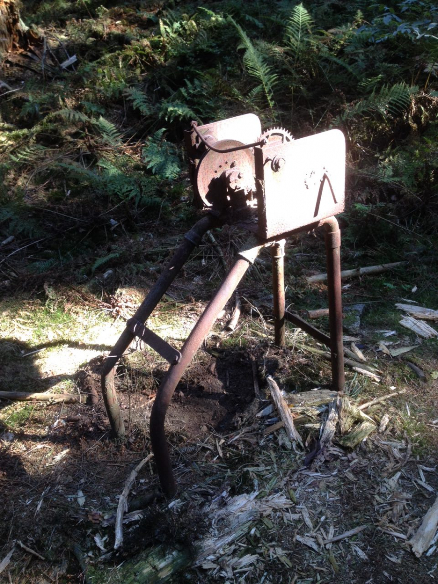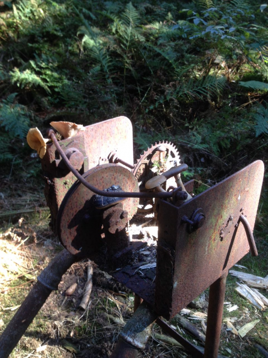 Im Steinbruchwald, der unheimlich interessante Winkel und etliche Geheimnisse barg, fanden wir ein archaisches Gerät, dessen rätselhaftes Räderwerk wohl einst den Steinbrucharbeitern half, Lasten zu bewegen. Das hätte auch gut in den Wundergarten von Andreas dem Schmied gepaßt!