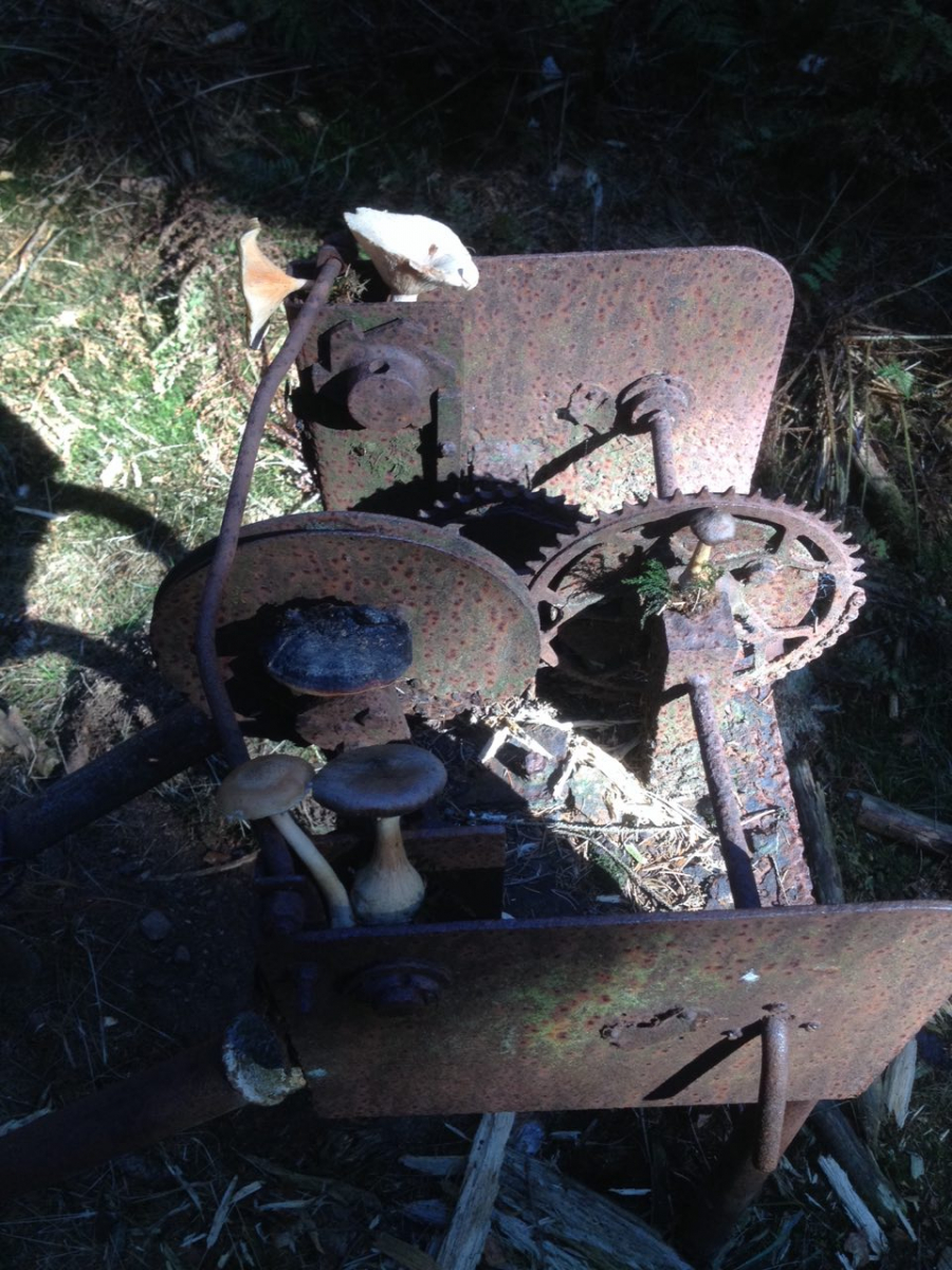 PILZE auf und an der Maschine? Sind die dort gewachsen? Hat sie jemand dort arrangiert, um uns etwas damit zu sagen? Und was könnte das wohl sein?