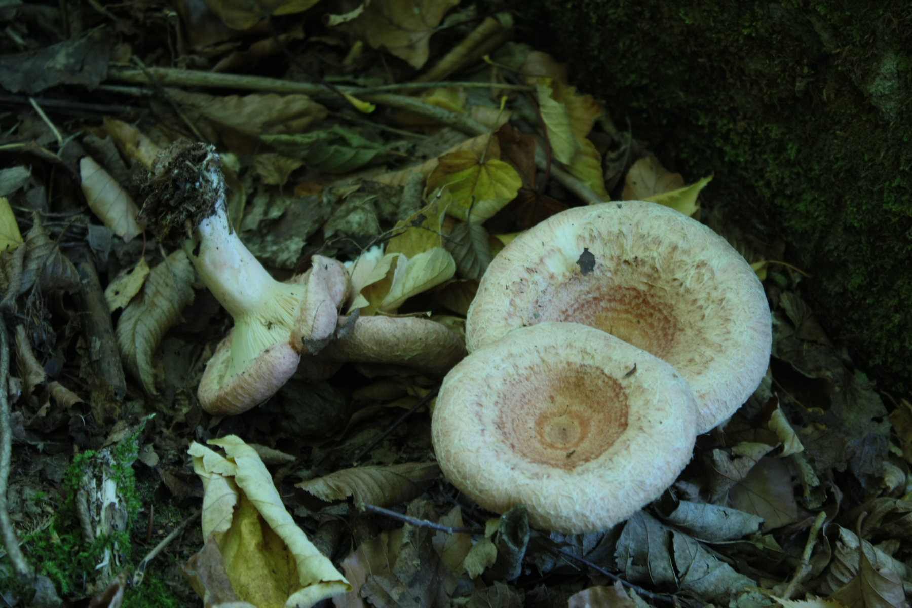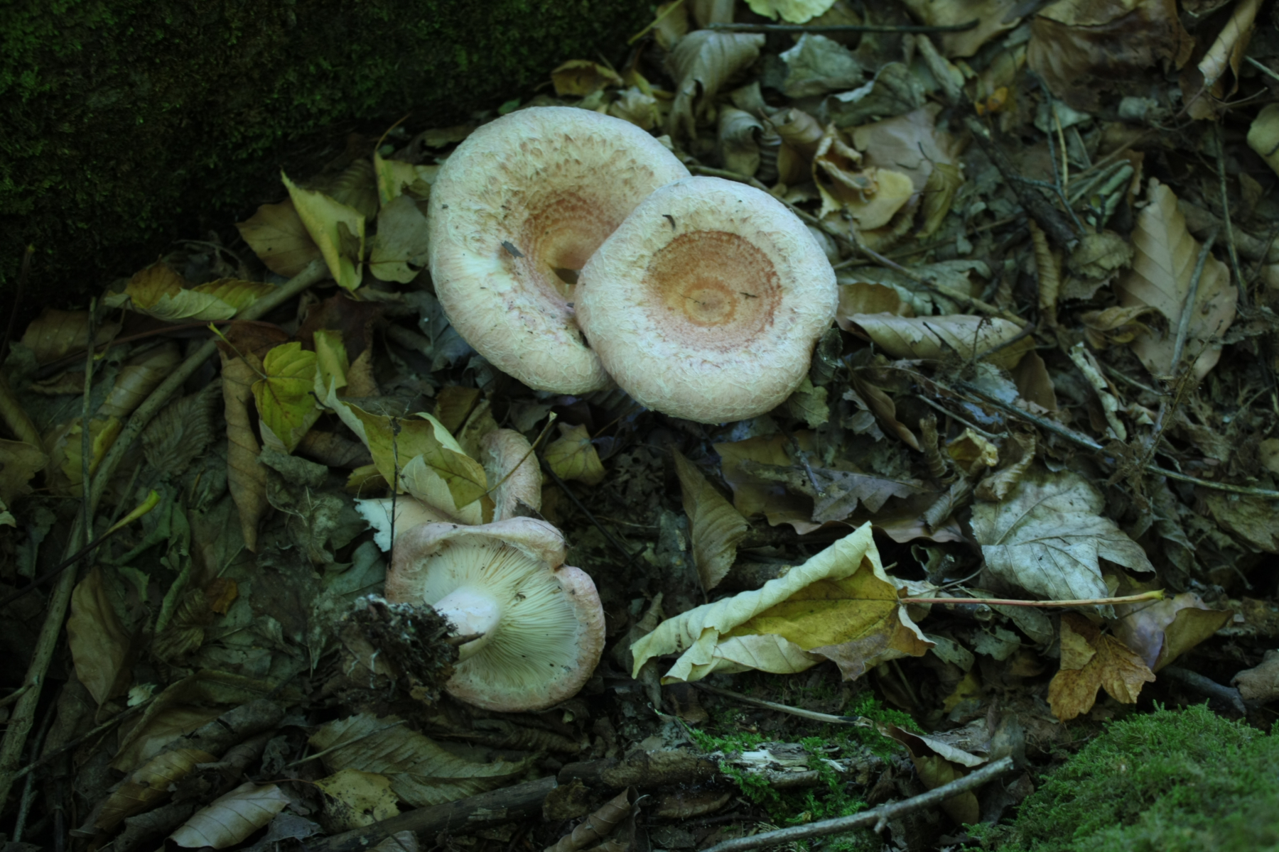 links: Nordischer Milchling, Lactarius trivialis --- rechts: Graufleckender Milchling, Lactarius vietus ?