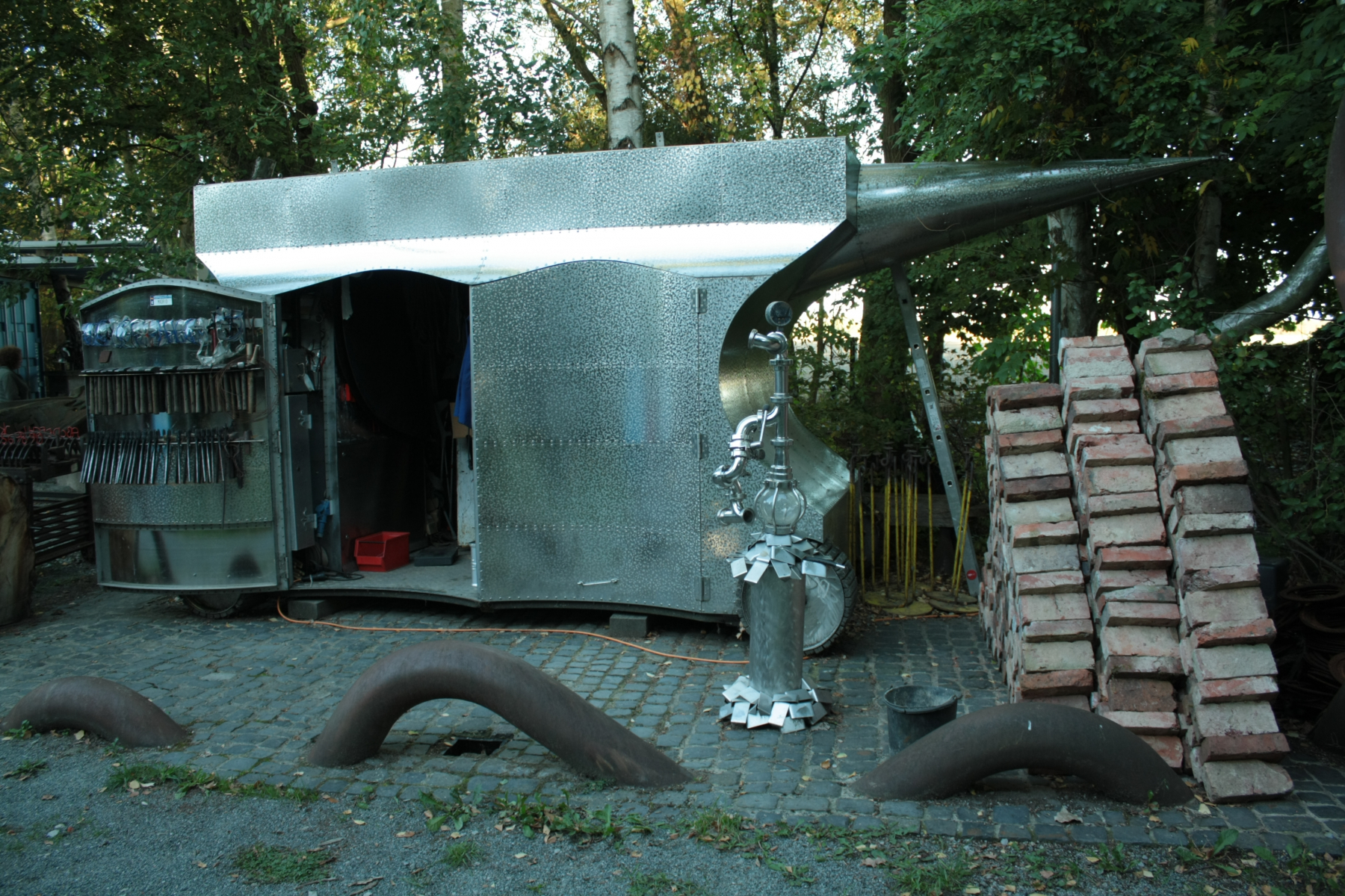 Dieser überdimensionale Amboss ist ein Werkzeugmobil ... oder wie das heißt.