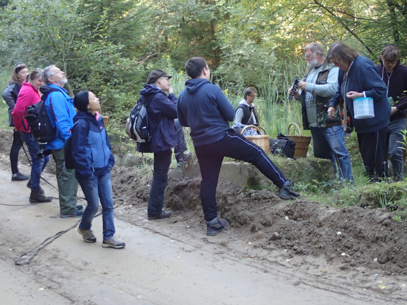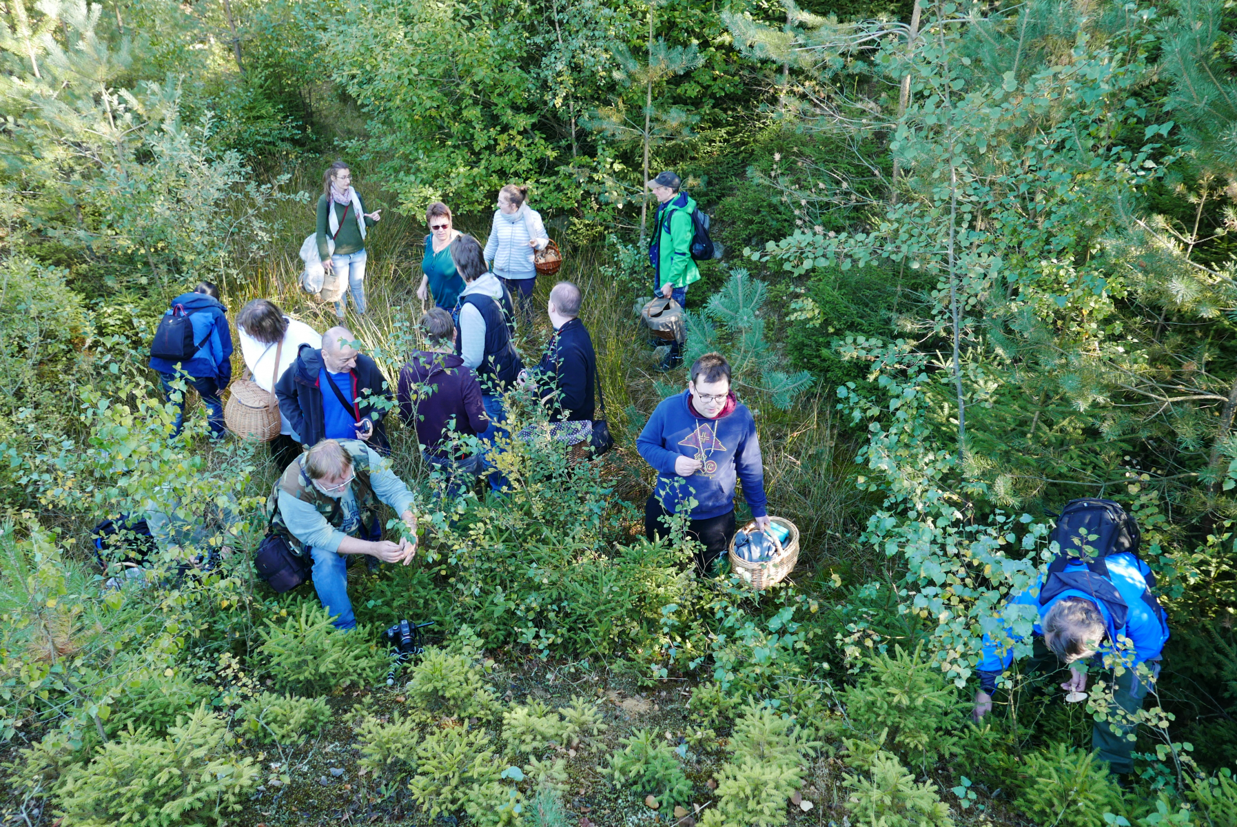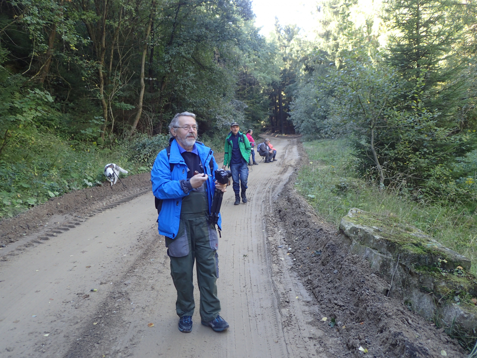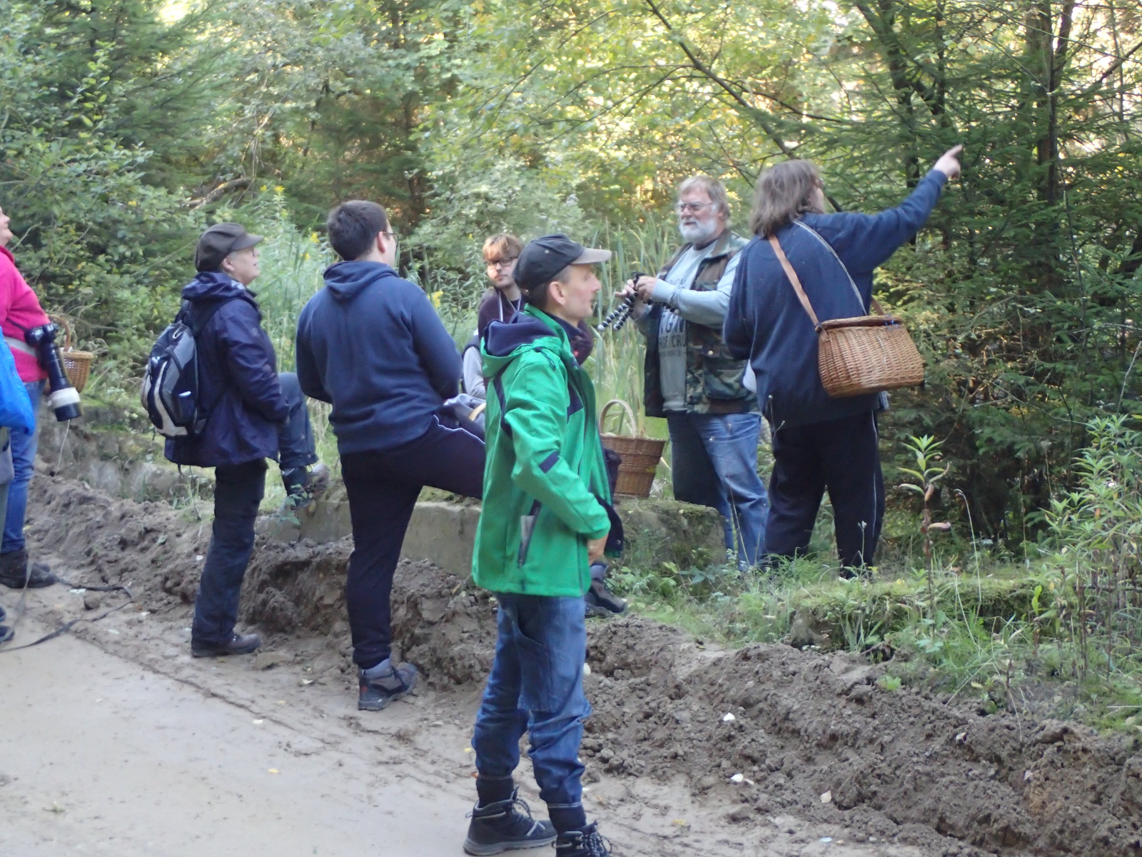 Tanja und Heiko führen uns zu einer Kuhle. Die Ecke scheint beliebt für Ausflügler wie auch für Pilzsammler zu sein.