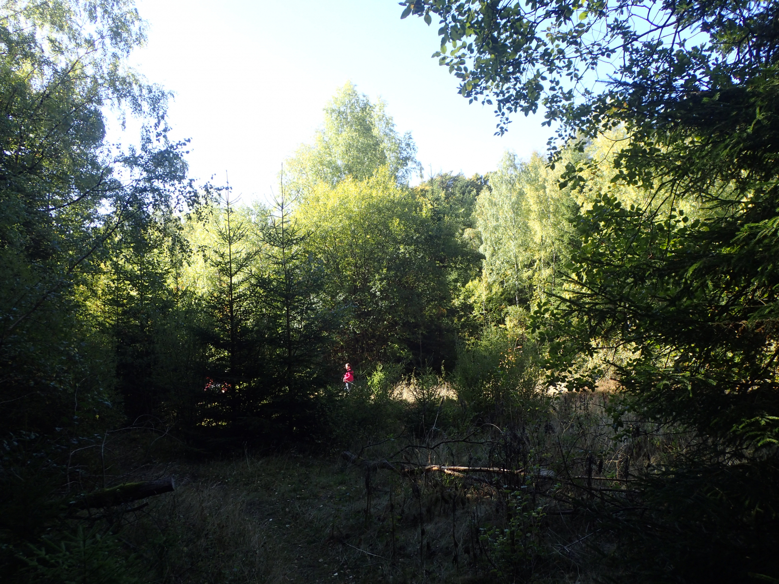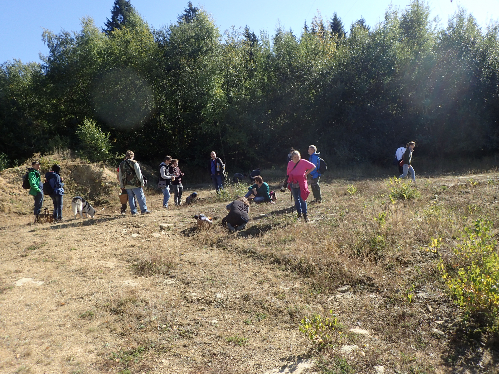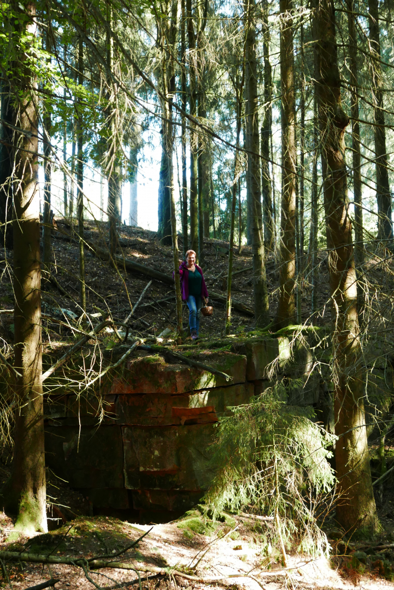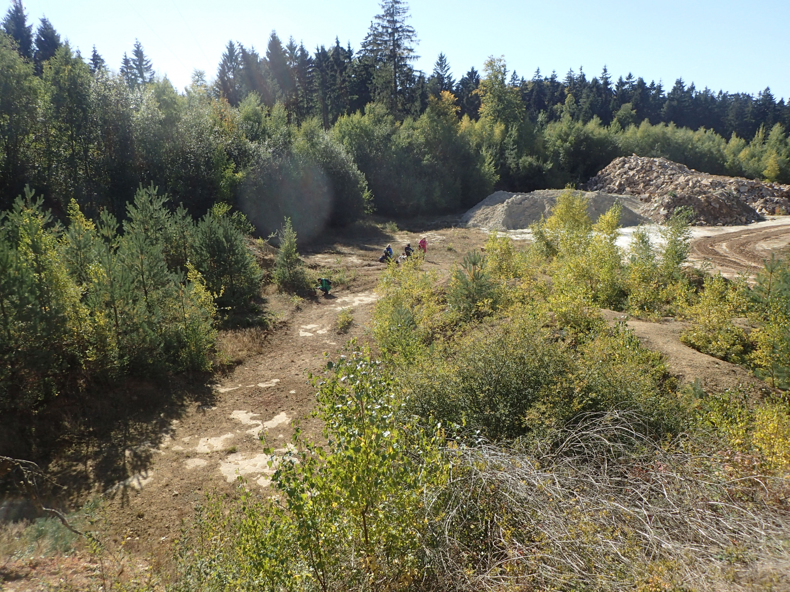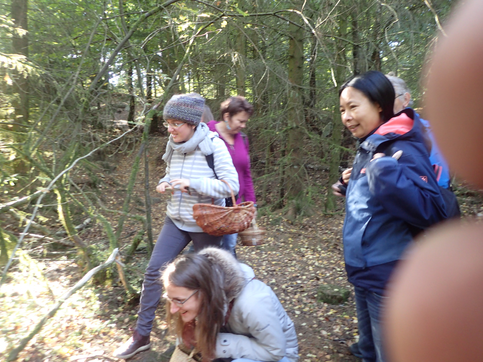 Tanja und Heiko führen uns zu einer Kuhle. Die Ecke scheint beliebt für Ausflügler wie auch für Pilzsammler zu sein.