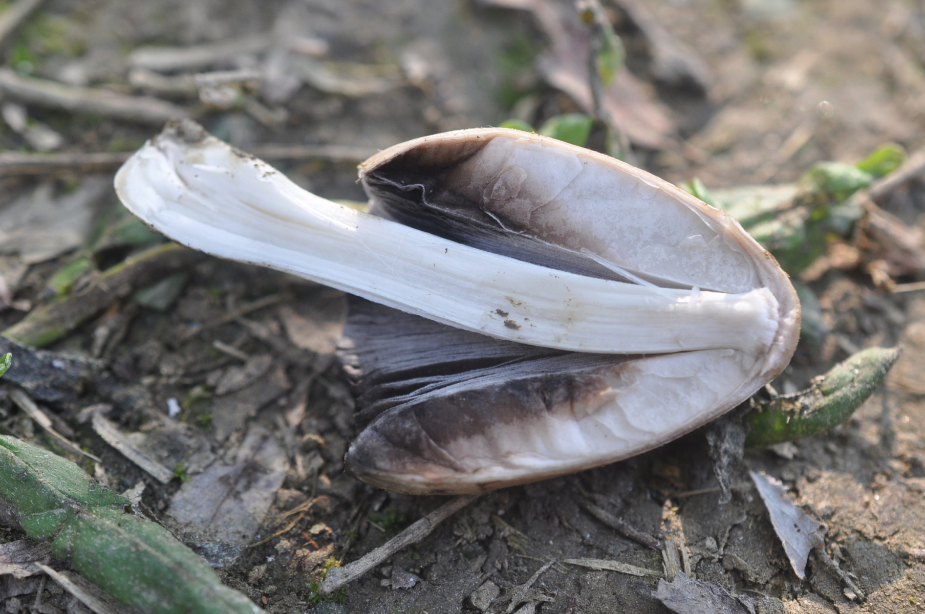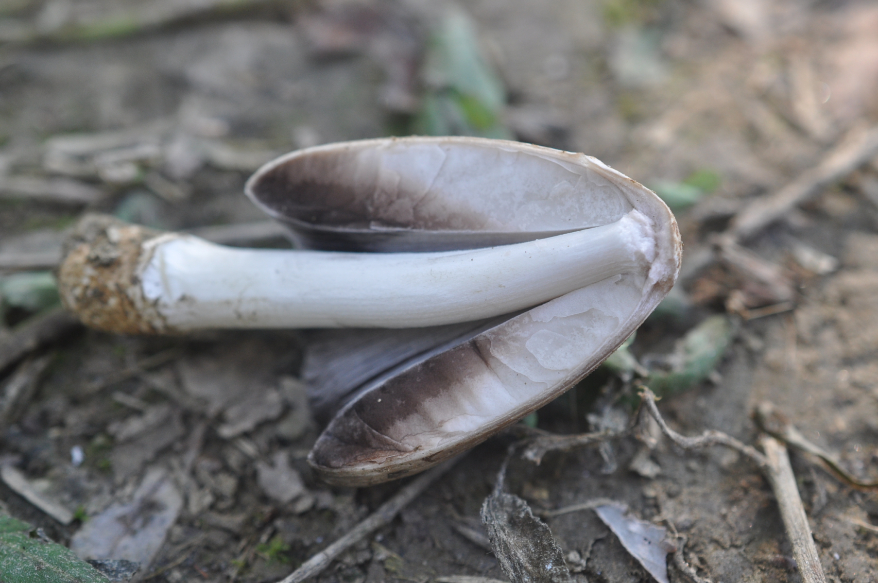 1. Coprinus sp - Tintling . Hat spezifische Hut und besonderes Stielbasis . Wachsen aus Erde (Begrabene Substrat) . Boden Sandig - Drau Sand . Bäume in nähe - Weiden - Schilf - sehr weiter Pappeln . Es war nur 1 Exemplar .