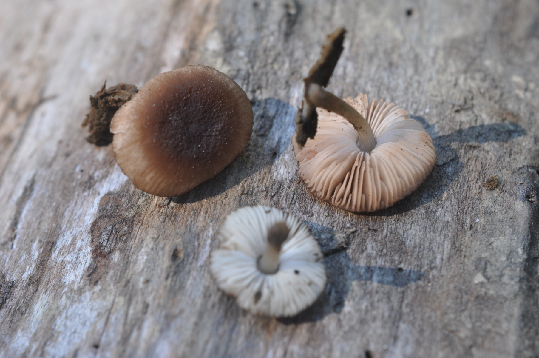 2. Pluteus sp. - Dachpilz ? Ist das Pluteus ? Erinnert wegen rosa Lamellen an Pluteus aber wahrscheinlich das um etwas anderes gehet , keine Idee . Hut Durchmesser ca 2 Centimeter . Substrat tote vermorschte Weidenstamm . Mehrere Exemplaren ein neben andern . Geruch neutral - Geschmack Mild