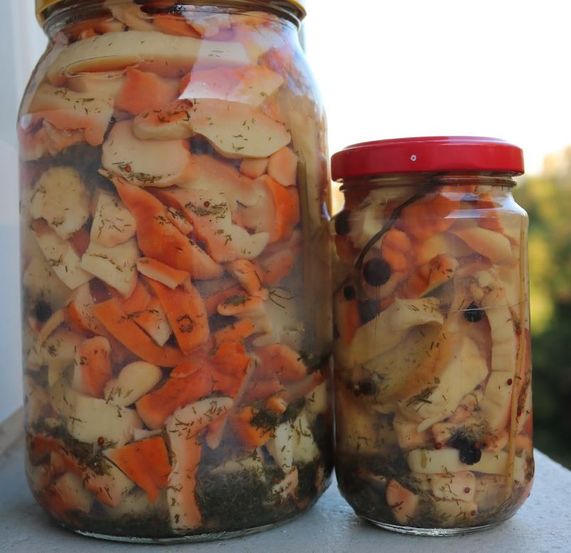 Die frischen FK die hier eingelegt wurden habe ich hier im BW-Thema gezeigt (Beitrag #68, 6. September). Sie waren frisch, sauber und gut. In jedem Glas befinden sind noch wenige junge Goldröhrlinge, sie sind auch auf den Bildern im BW-Thema zu sehen. Ich lege Pilze auf selbe Art seit zwei Jahren ein, habe nie Probleme gehabt oder was ähnliches gesehen.