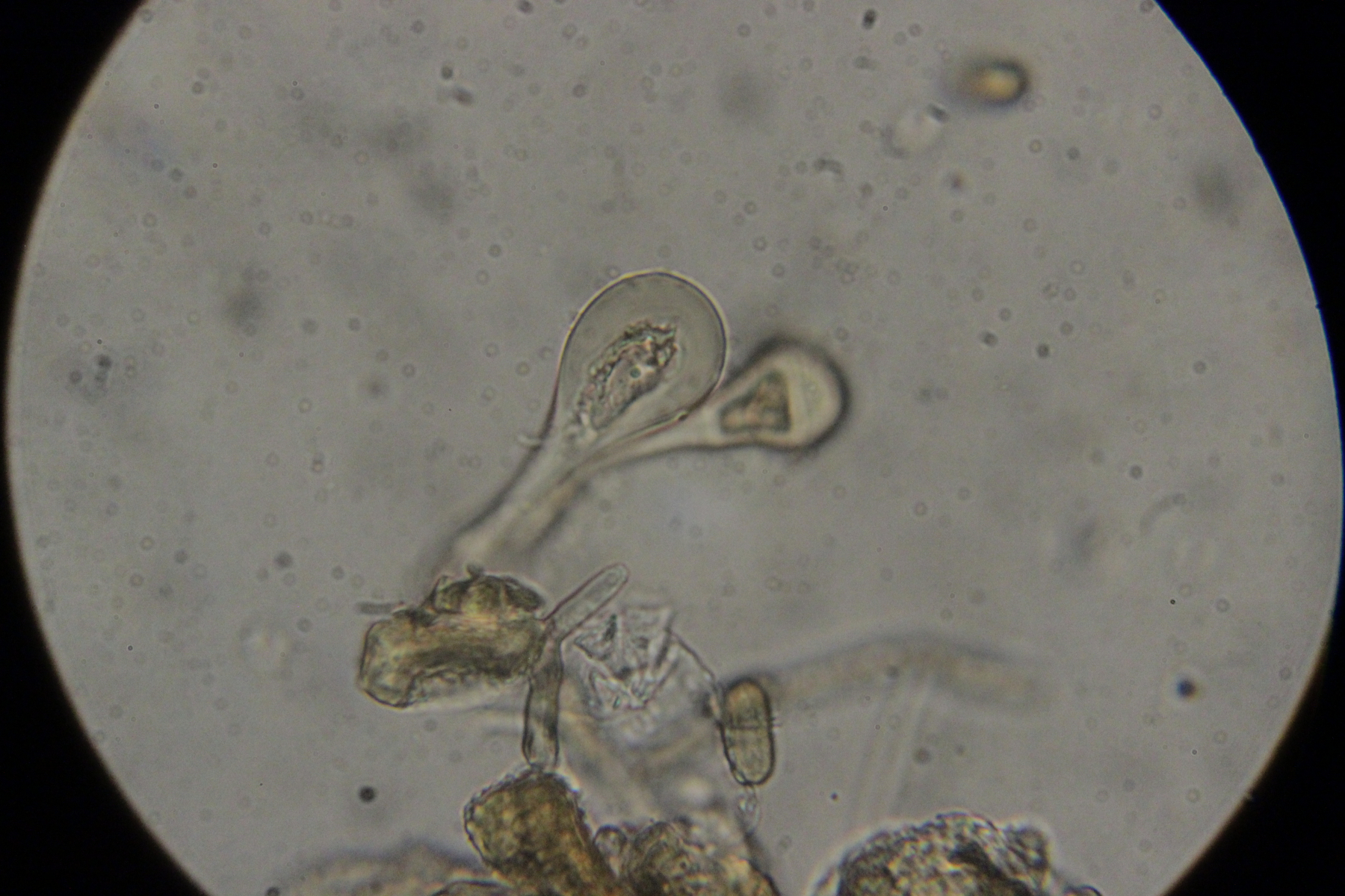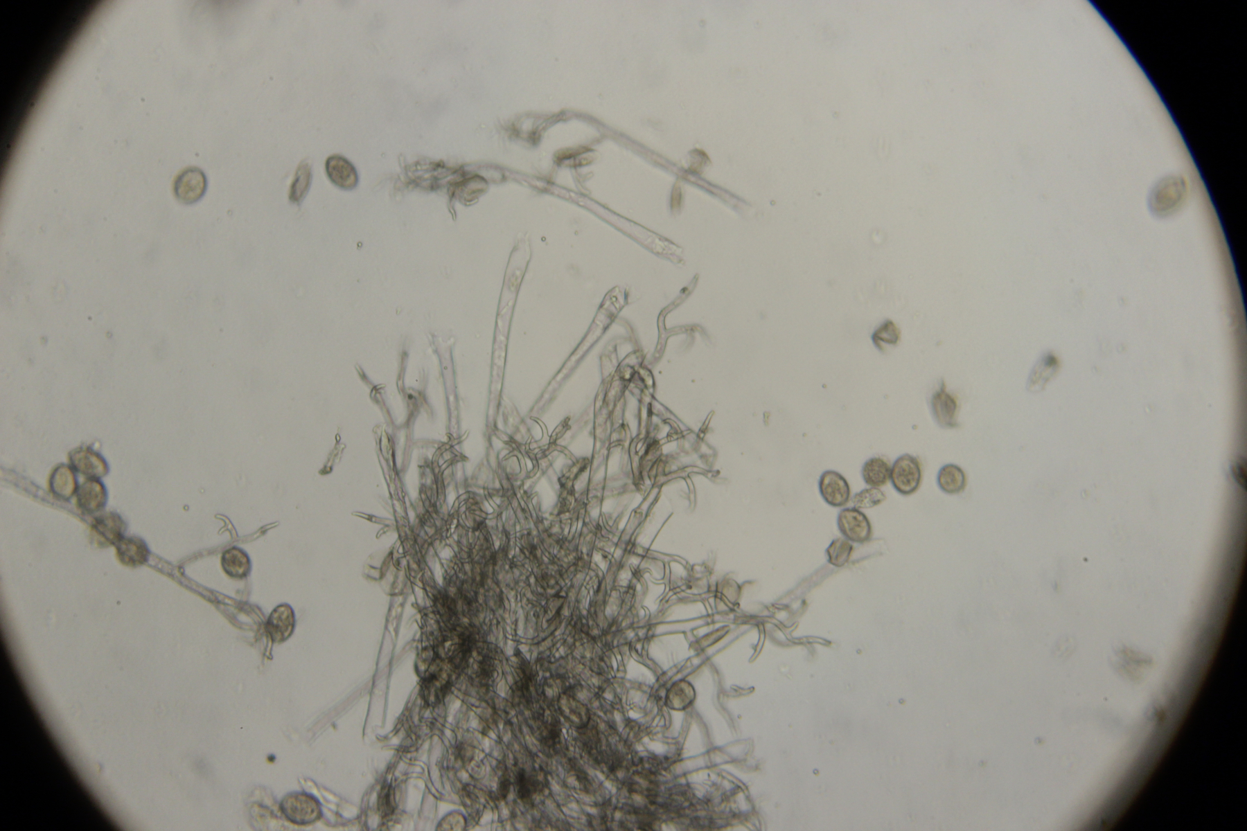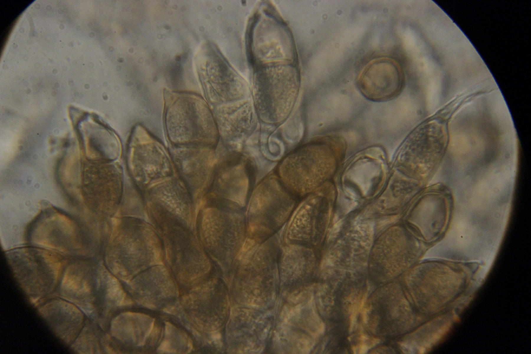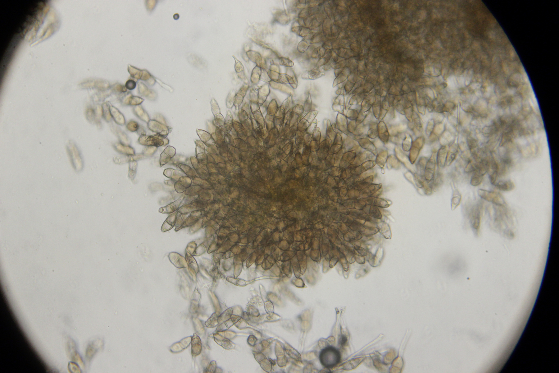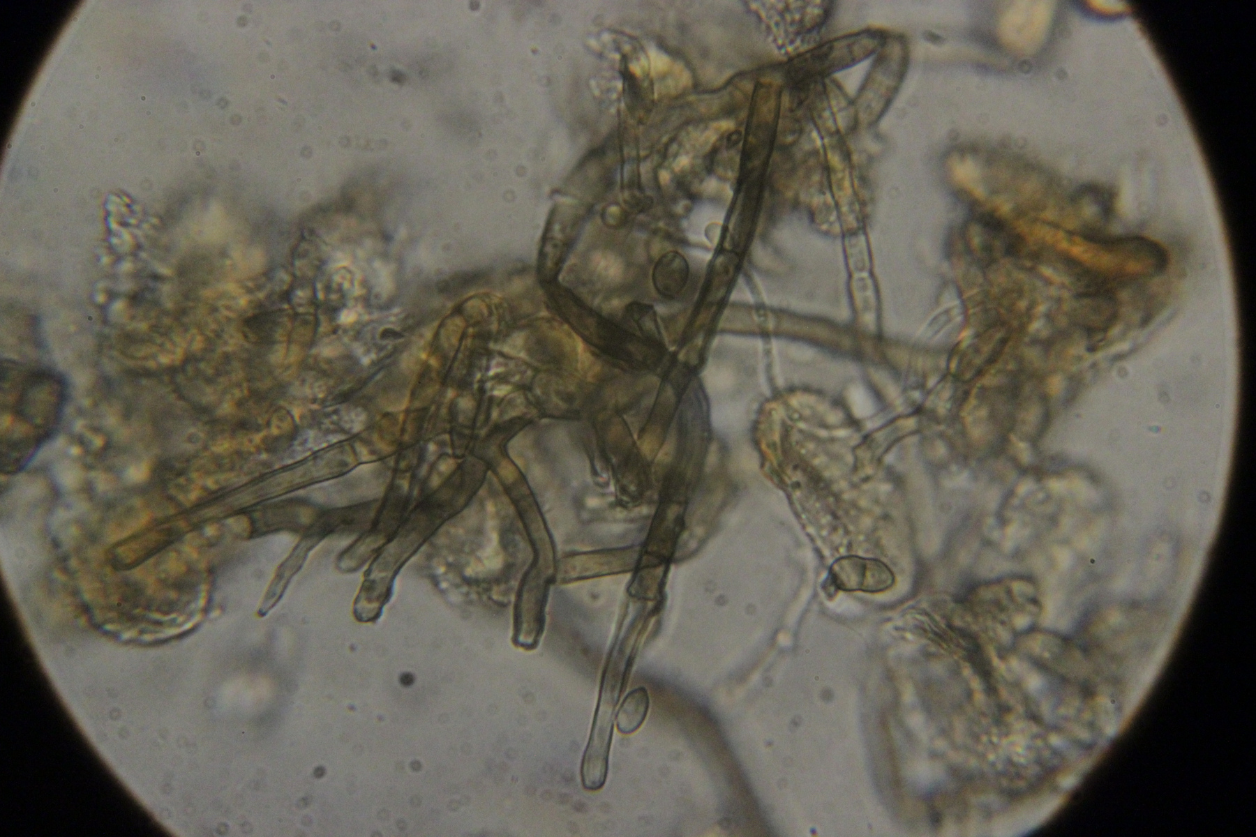 18. Konidien mit Fibrosinkörpern, also haben wir Podosphaera macularis hier auf Humulus lupulus