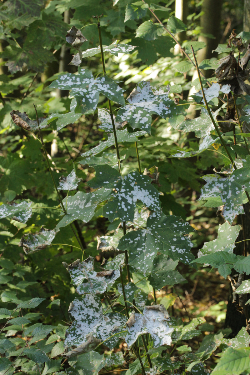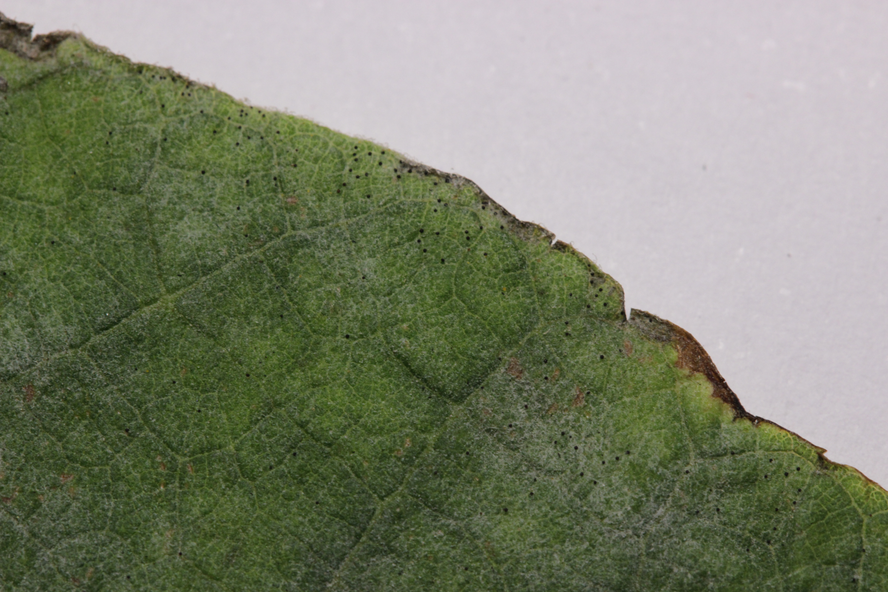 15. Erysiphe elevata auf Catalpa sp., dank langer Anhängsel an den Fruchtkörper zu erkennen.