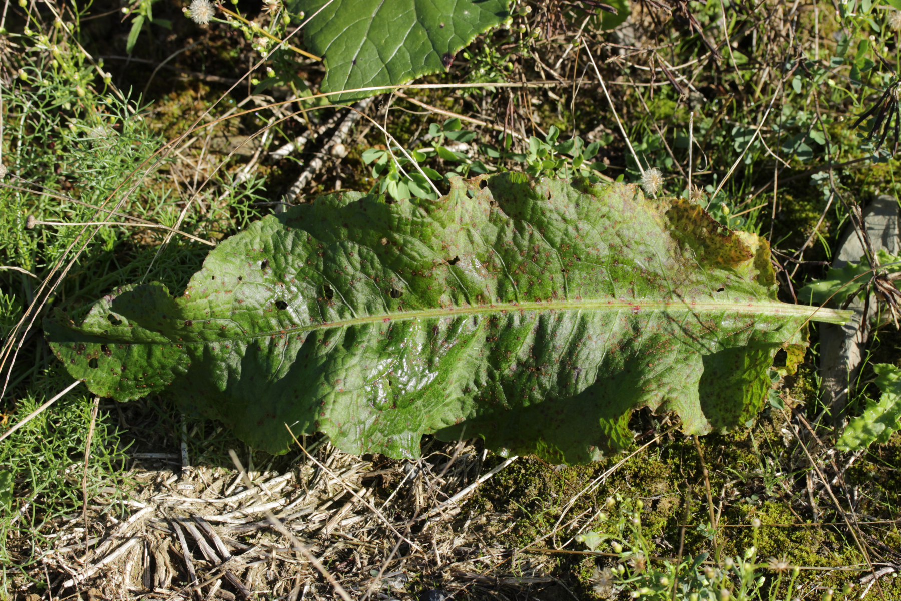 13. Das dürfte ein Rundbriefpilz sein, wenn ich mich nicht irre. Wir haben als Wirt Rumex Subg. Rumex vor uns und sind nicht in den Alpen, landen also bei Uromyces rumicis.