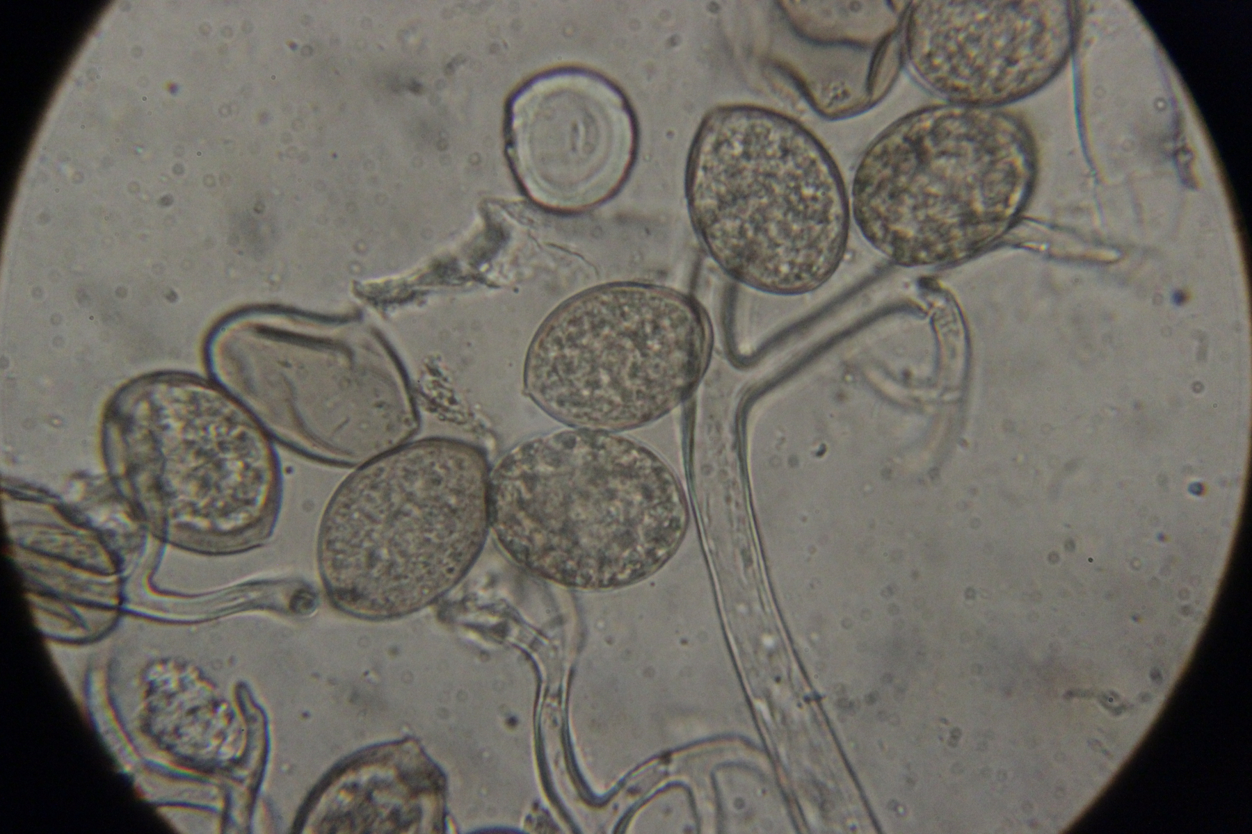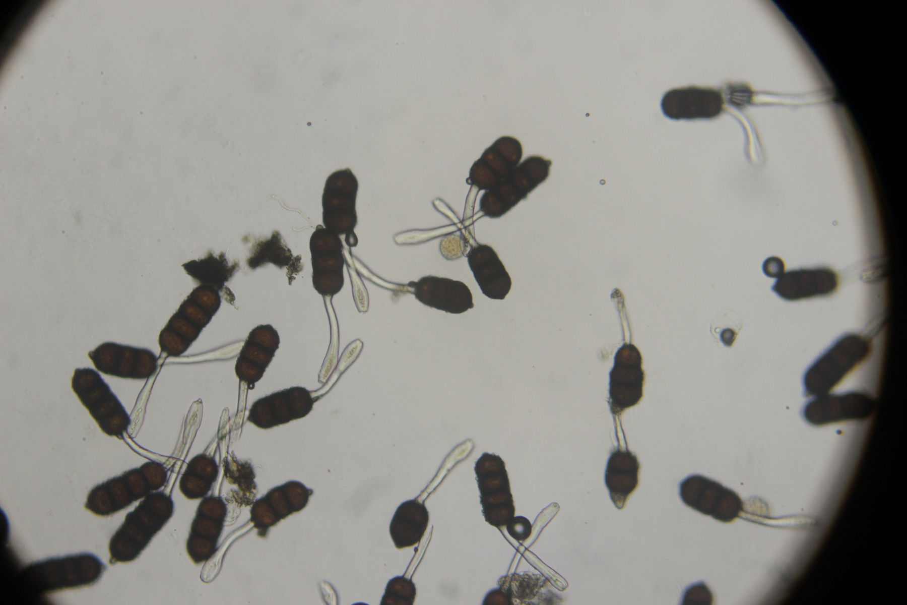 18. Konidien mit Fibrosinkörpern, also haben wir Podosphaera macularis hier auf Humulus lupulus