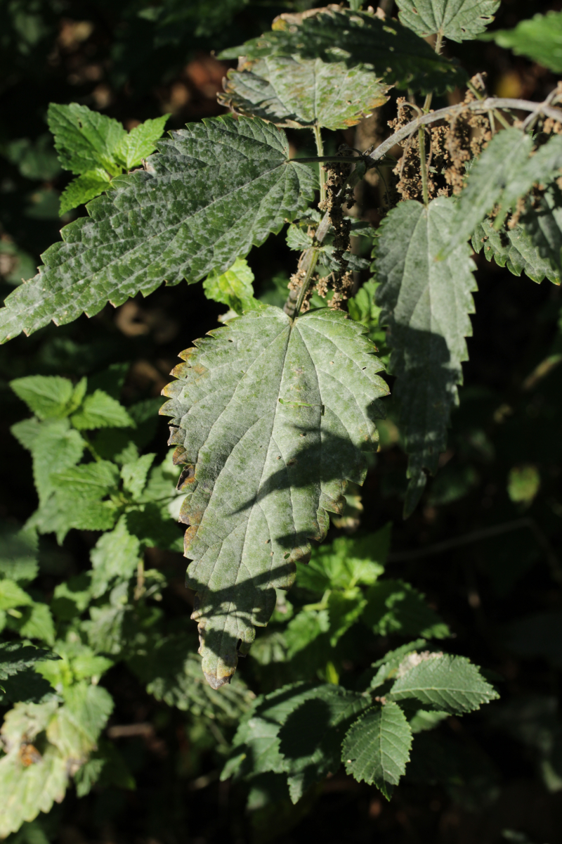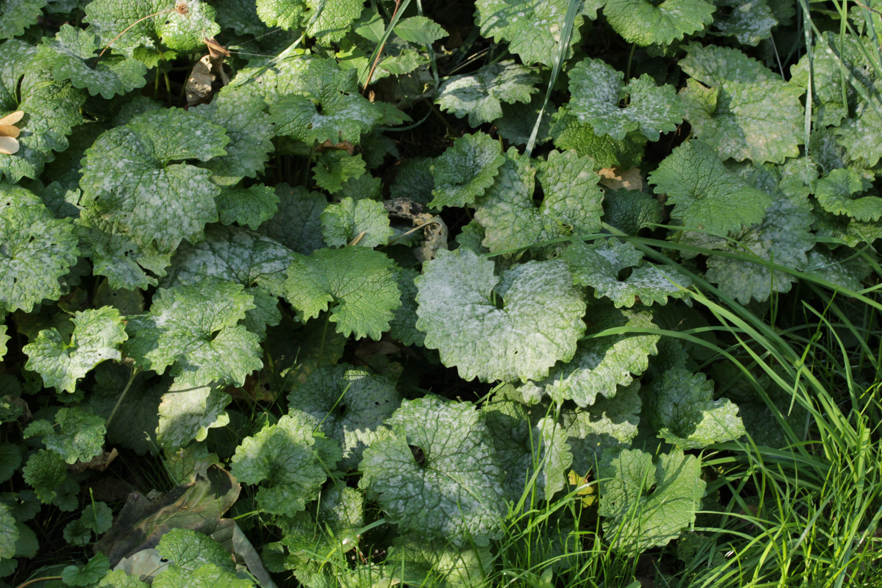 17. Podosphaera aphanis auf Geum urbanum EDIT: Erysiphe cruciferarum auf Alliarum petiolata. Man sollte die Pflanzen schon richtig bestimmen...