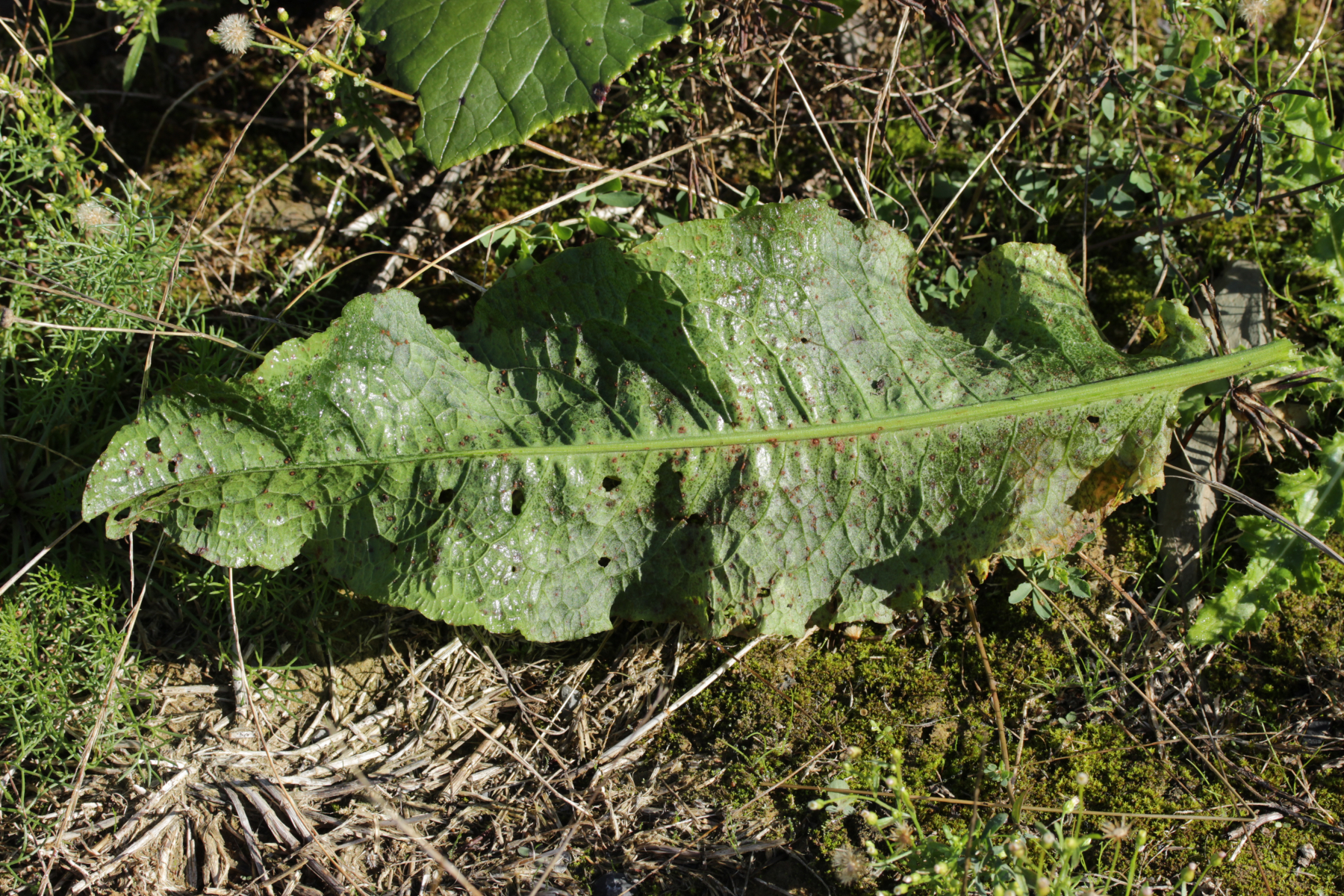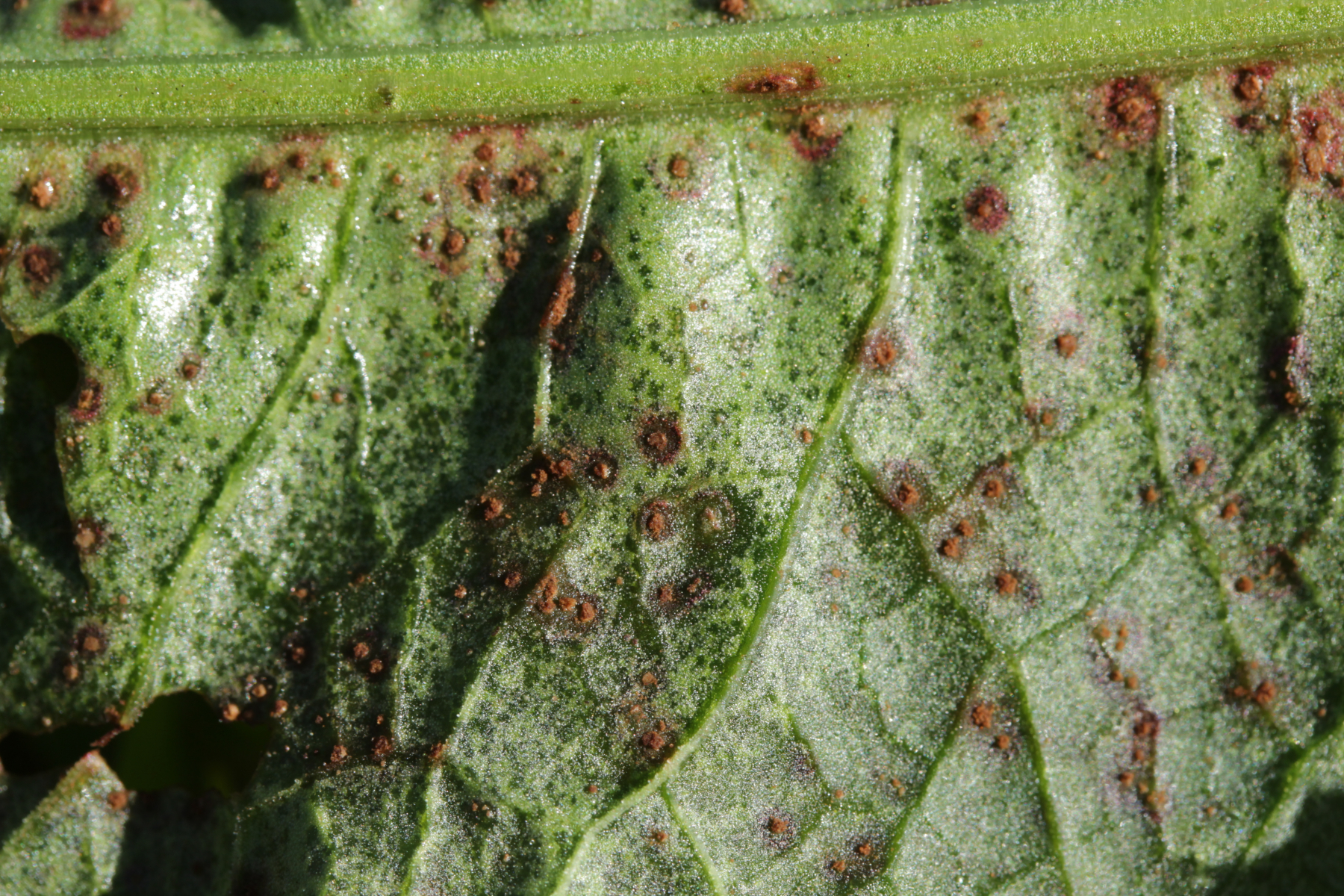 13. Das dürfte ein Rundbriefpilz sein, wenn ich mich nicht irre. Wir haben als Wirt Rumex Subg. Rumex vor uns und sind nicht in den Alpen, landen also bei Uromyces rumicis.