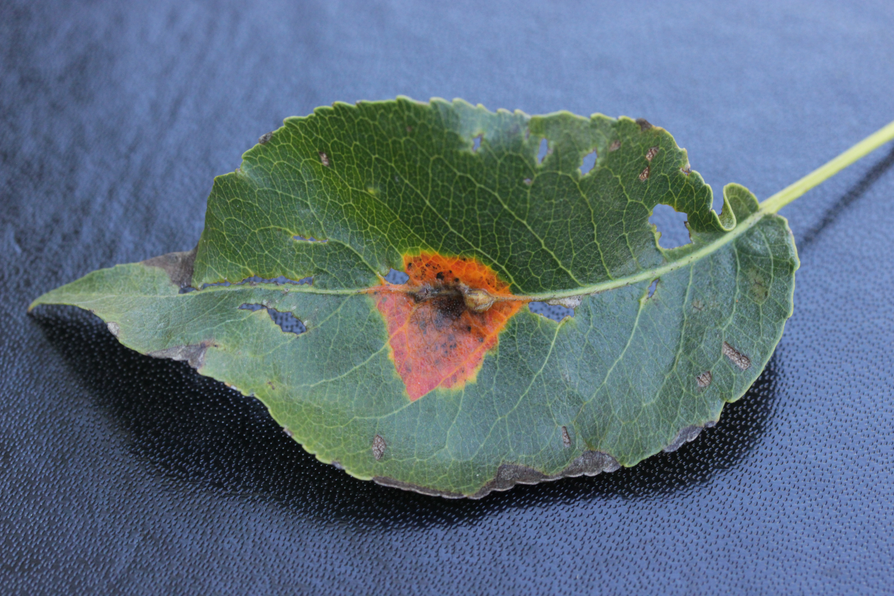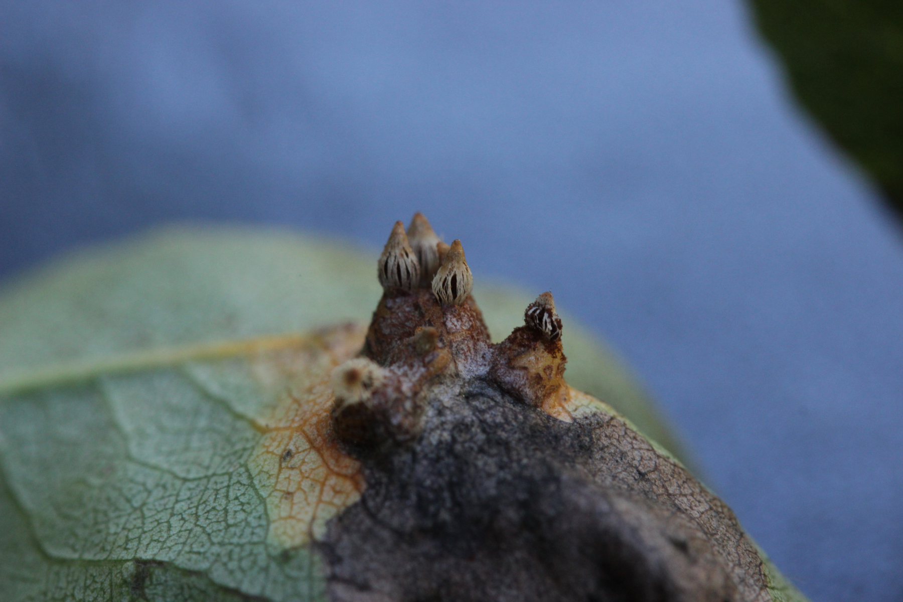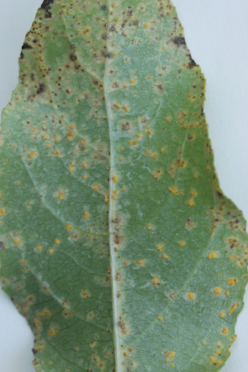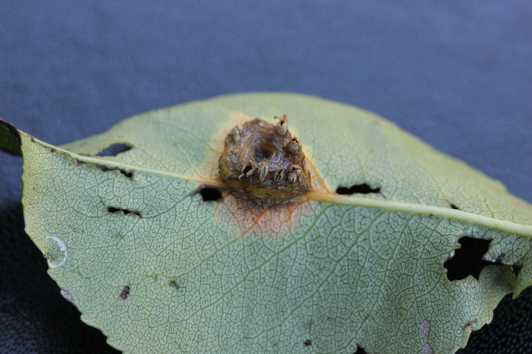 16. Dank Aecien vom Roestelia wissen wir schonmal direkt, daß es sich um einen Rostpilz der Gattung Gymnosporangium handelt. Der Baum scheint eine Birne zu sein und dann landen wir schließlich bei Gymnosporangium sabinae
