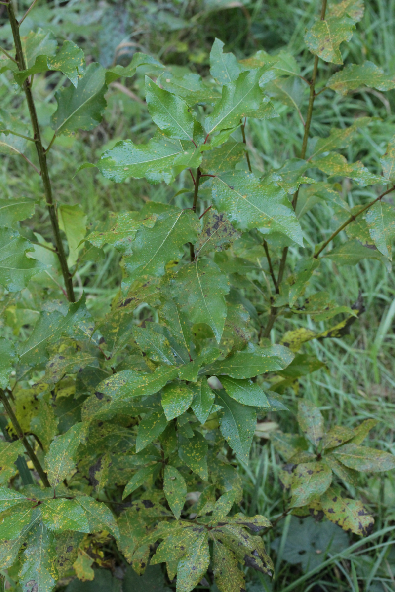 9. Mehltau auf Eiche. Auch hier haben wir es wieder mit Erysiphe zu tun.Furchtkörper fanden sich nur blattunterseits, was für Erysiphe hypophylla sprechen würde. Konidien waren leider keine zu finden, so daß man die nicht als Entscheidungshilfe heranziehen kann.