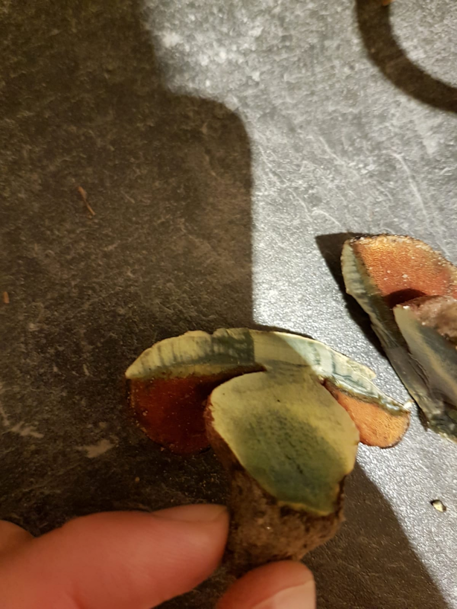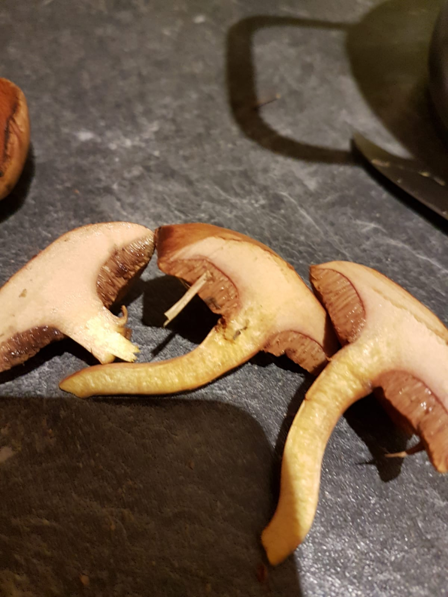 1. Pfefferröhrling? Innen extrem gelber Stiel und relativ große Röhren würden dafür sprechen