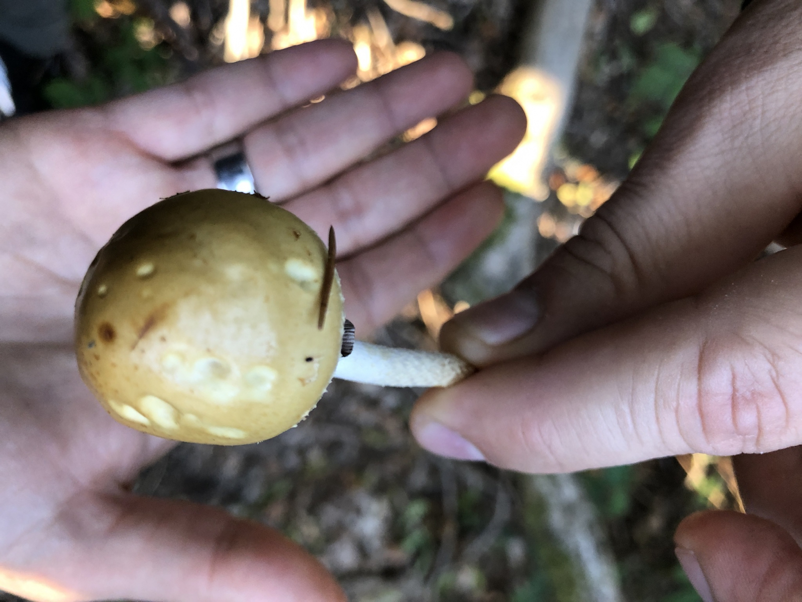 Das Velum universale auf dem Hut ist wirklich sehr deutlich - darauf hatte ich beim Foto nicht geachtet - ich habe nur auf den Stiel geschaut und der Ring saß recht weit oben... wie gesagt, ausschließen kann ich so L. squamosus nicht. Es wäre aber eine untypische Kollektion.