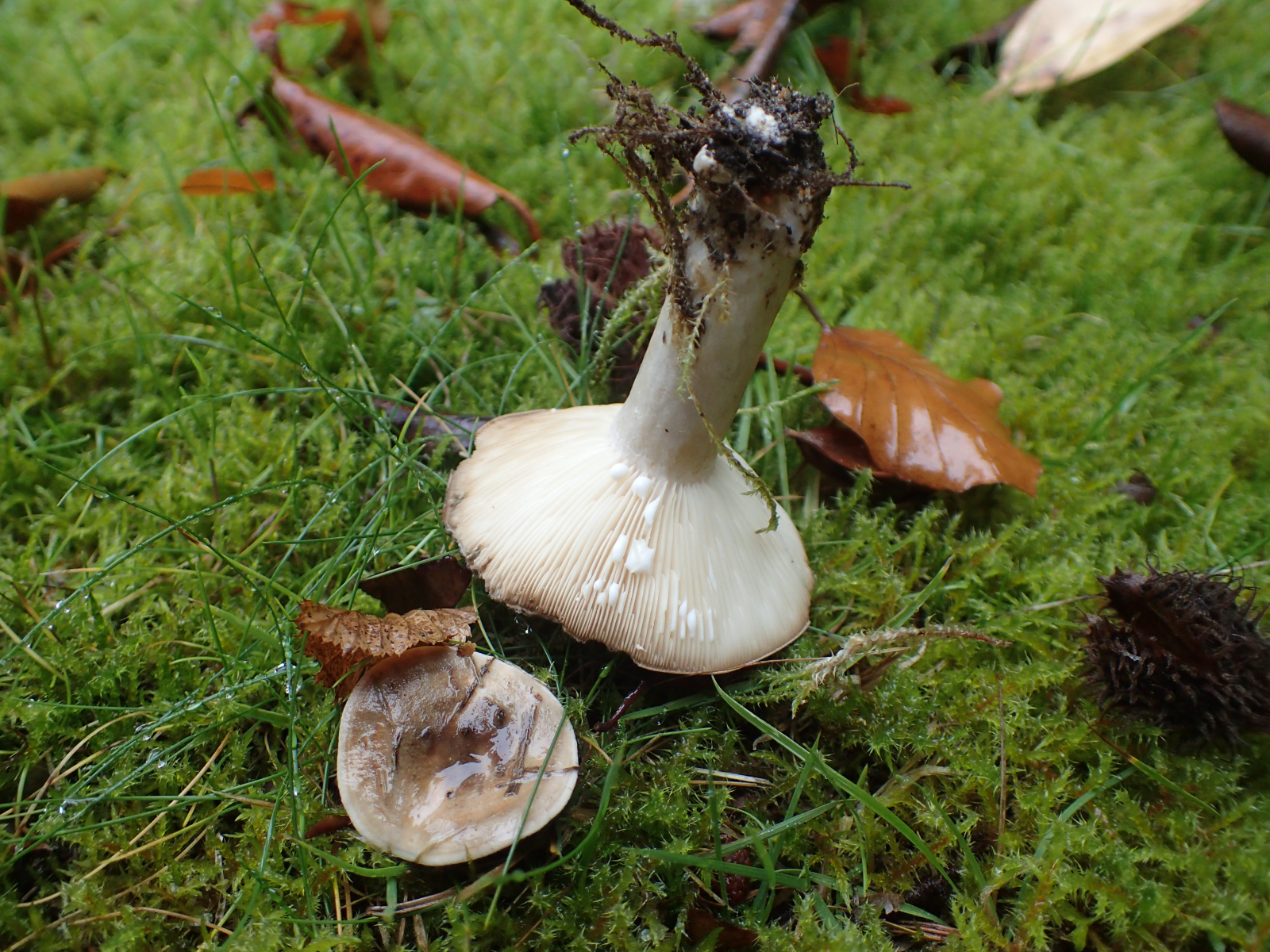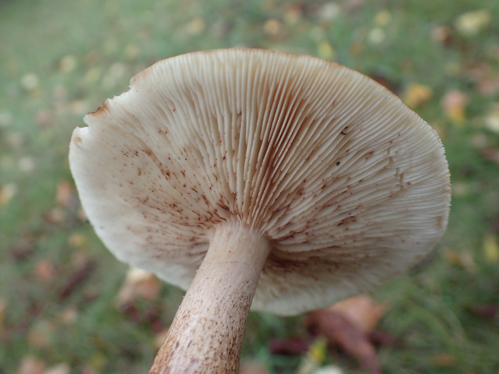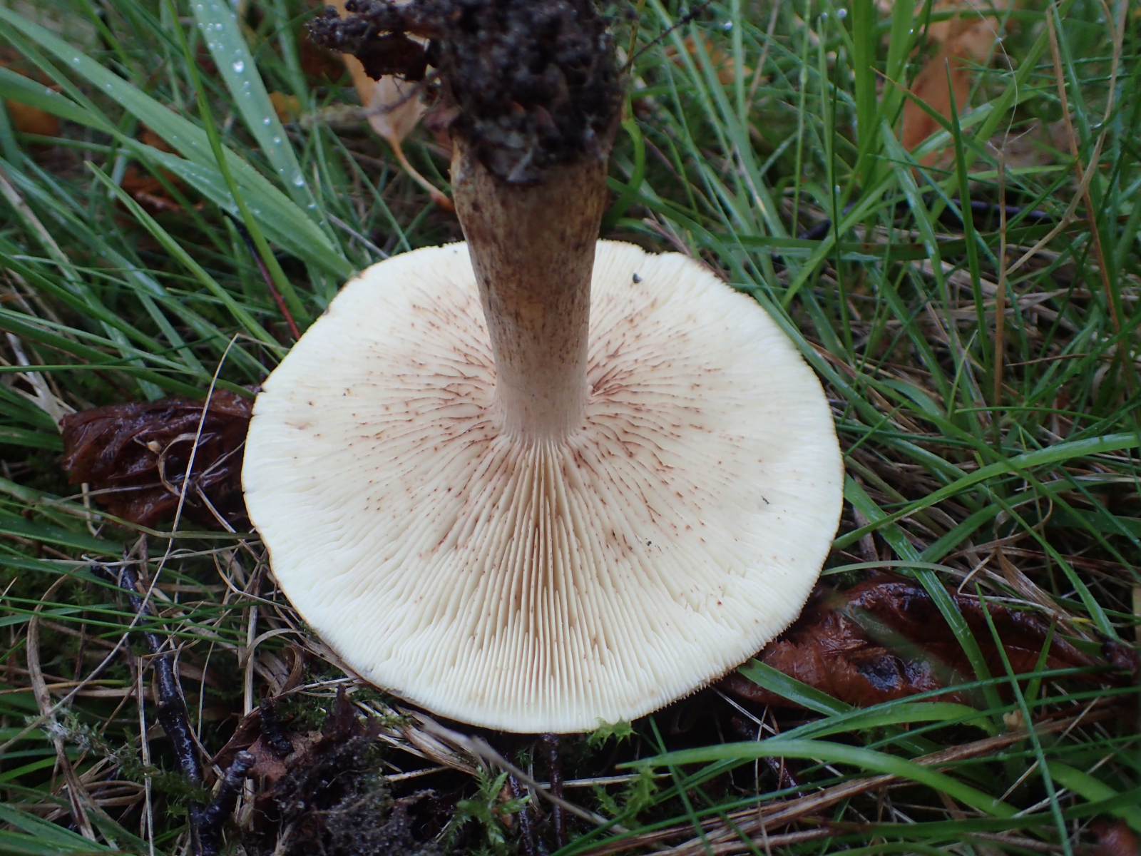 Ich denke jedoch, daß die Kamera die gelblichen Lamellen nicht entfärbt hat. Ich meine, ich würde mich an die Farbe erinnern. Darum fiel mir ja auch das grünliche am Stiel auf. Ich vermute vielmehr, die Pilze sind noch zu jung oder zu frisch, als daß die Farbe schon da wäre. Beim nächsten mal schaue ich natürlich genauer hin.