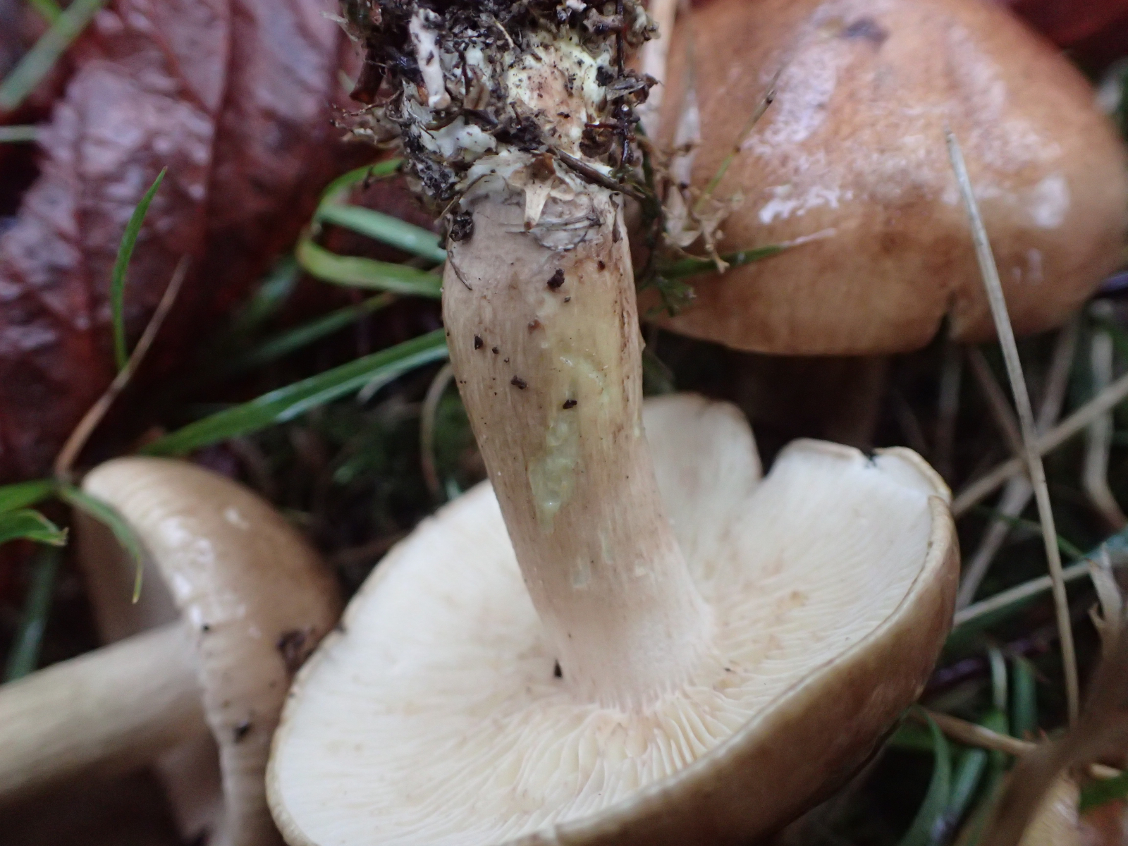 Vielleicht hast du doch recht, und das Velum erscheint nur darum nicht so wie es für Cortinarius sein sollte, weil es ganz schleimig und klebrig ist und am Stiel anliegt. Was erklren könnte, warum da so viel Erdreich am Stiel rumklebt.