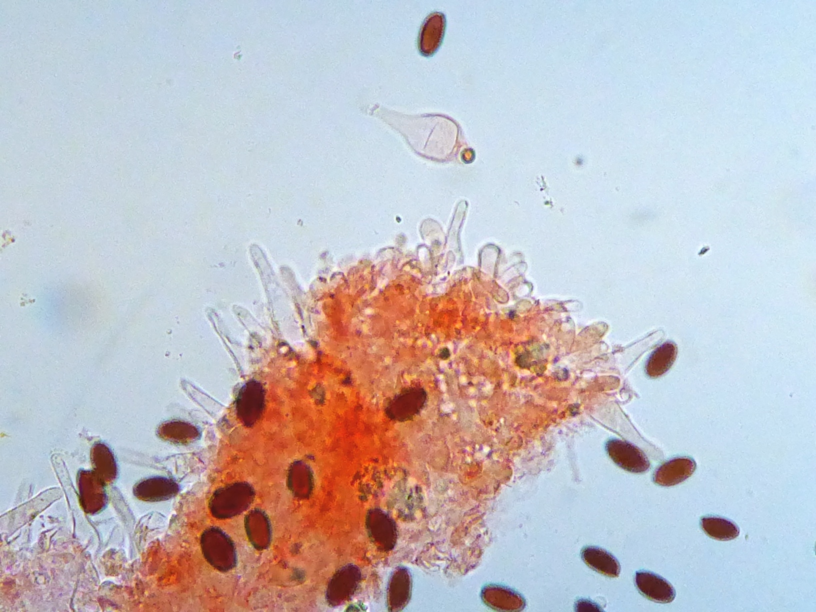 Mal abgesehen von der Wurzel ist ein nahezu untrügliches Merkmal der Bau der Lamellenschneide. Da gibt es neben den echten Zystiden massenhaft kleine keulige Zellen, fast wie Basidiolen. P. longicauda ist eine relativ "stämmige" Art; von meinen Bildern nicht verwirren lassen. Nur die zweite Reihe ist richtig, den Rest muss ich noch aussortieren.