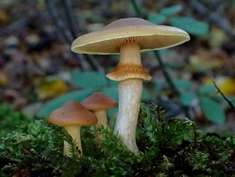 Den Ring finde ich markant, darauf dürfte braunes Sporenpulver sein. Wuchs im Moos auf liegendem Holz. Leider habe ich keine Idee, welche
