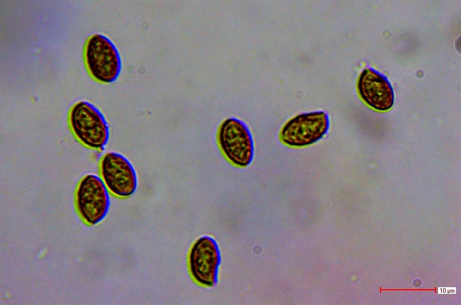 Mikroskopisch passt die Form der Sporen (mit KP!) und die Sporengröße (gemessen 8-9,5 x 5-5,7 µ),