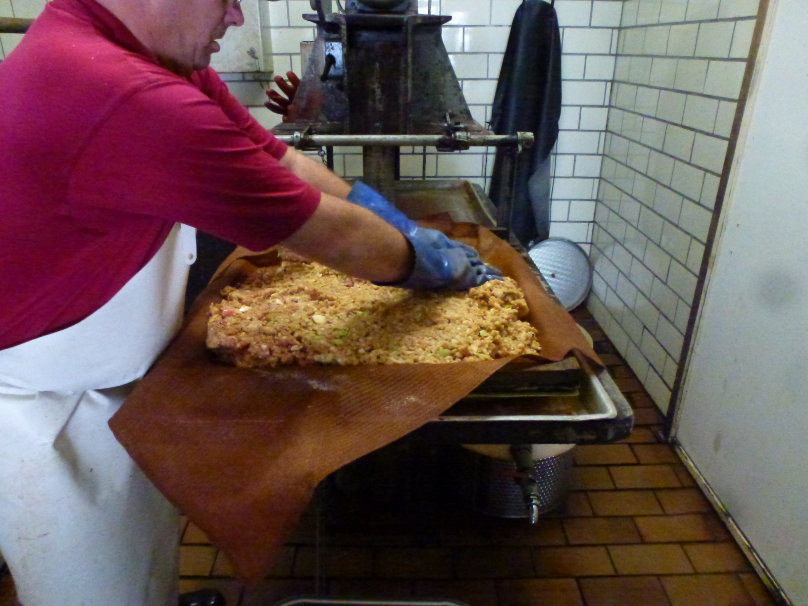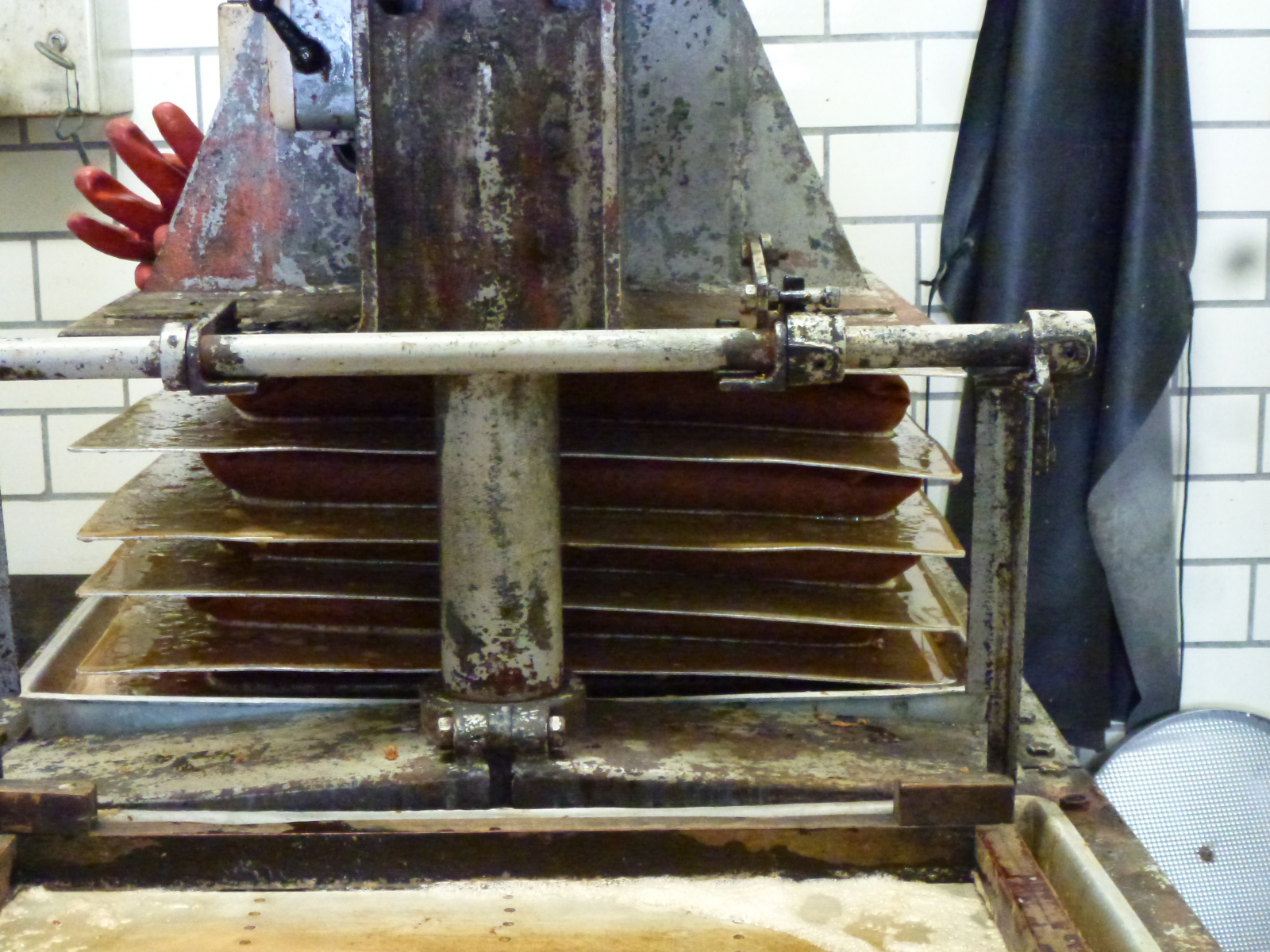 Jetzt gibt's "Luft auf's Kerrnche", die alte Maschine ächzt und baut Druck auf, um die Schichten auszupressen.