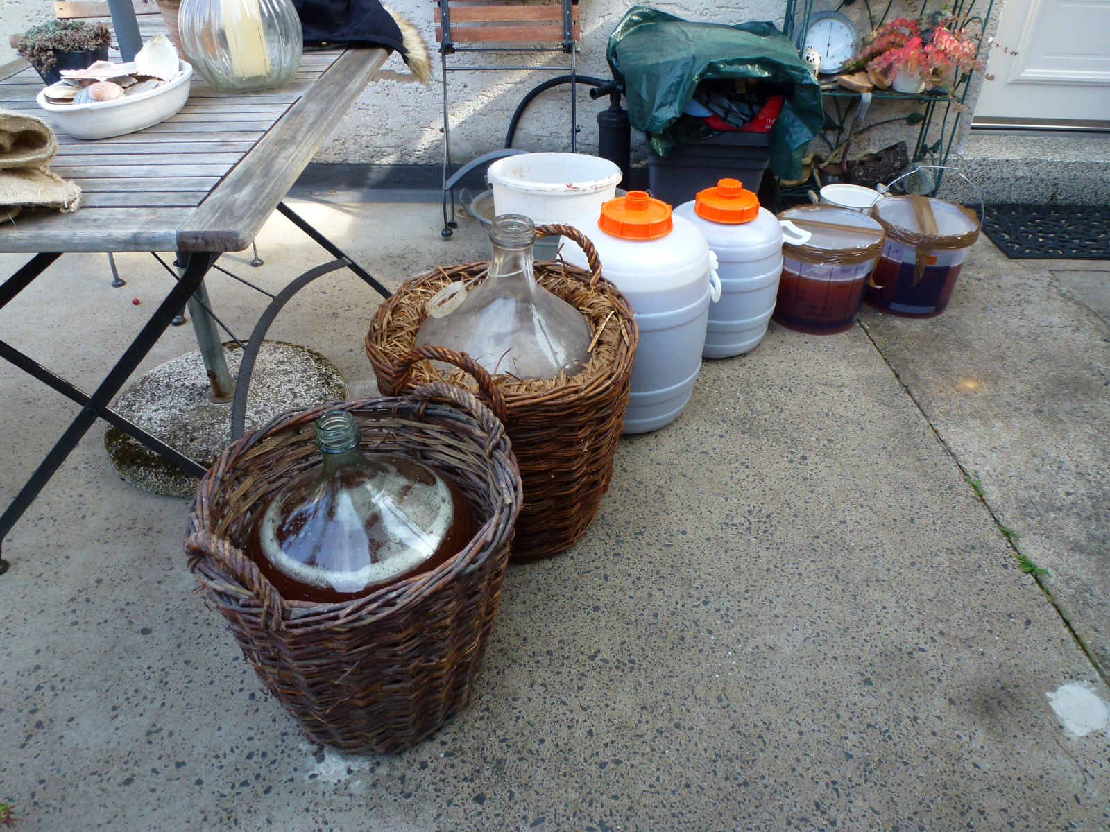 Also habe ich alle verfügbaren Flaschen bereitgestellt, noch ein kleines Fass und einen Satz Bag-in-Boxes gekauft. Am Mittwoch und gestern wurden im Garten, bei Nachbarn und auf den Pferdekoppeln meiner Nichte Äpfel gepflückt, etwa 180 kg...