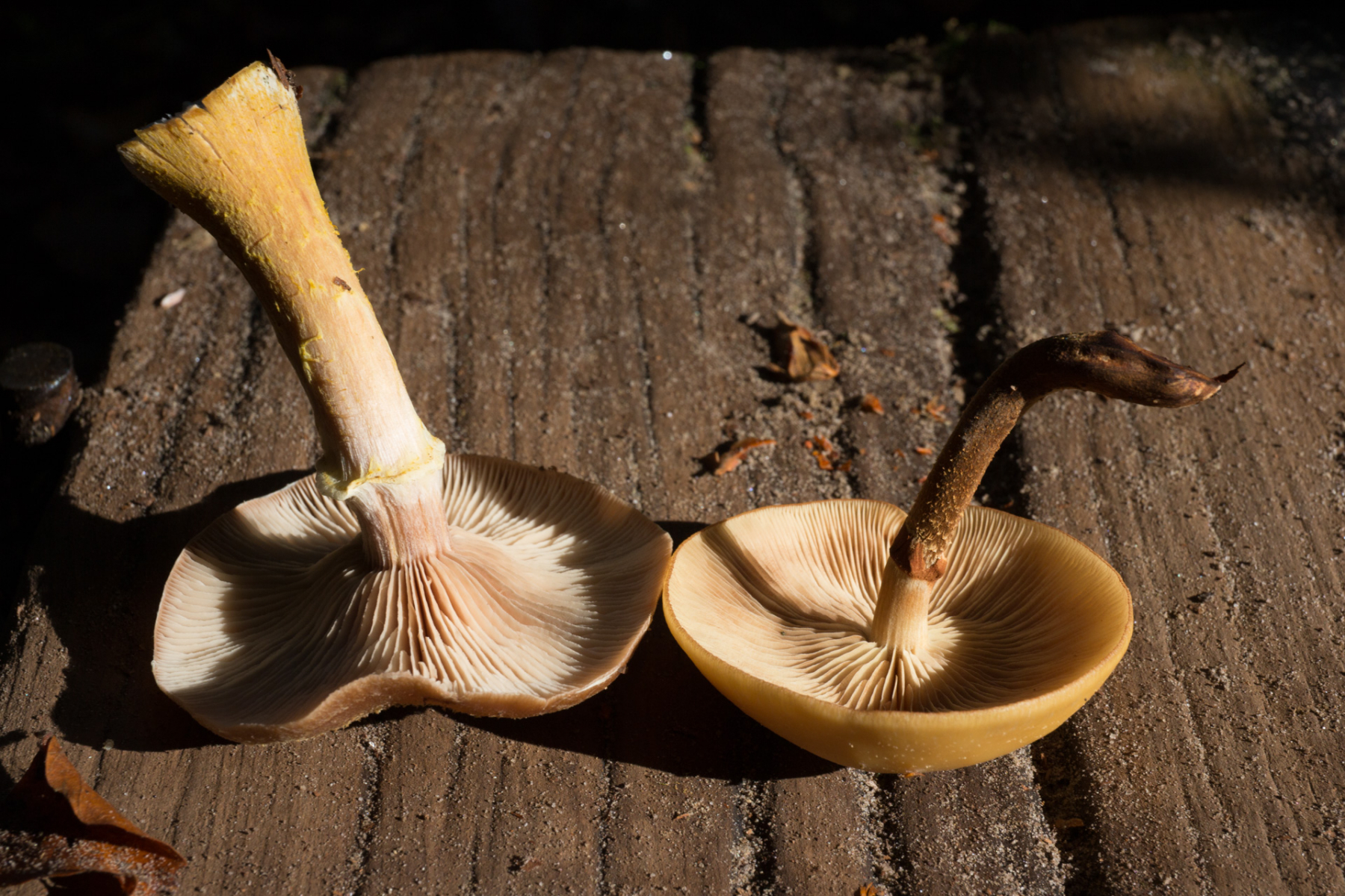 Liege ich mit (alter) Hallimasch für den linken PIlz richtig? Und gibt's Einwände gegen die Stockschwämmchen-Bestimmung?