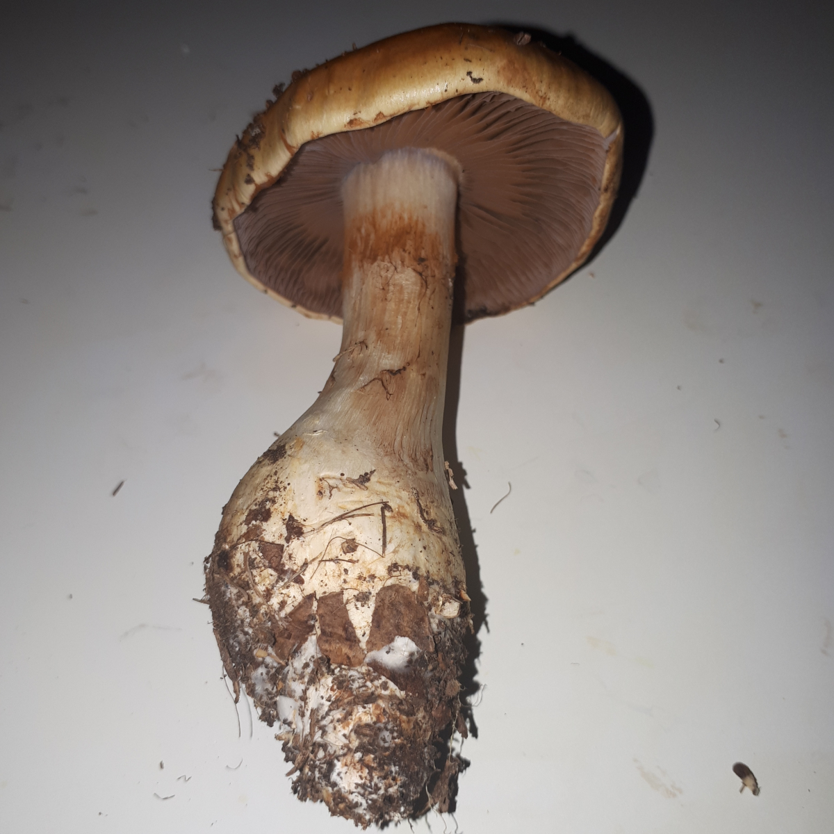 Ich denke, das ist der Strohgelbe Klumpfuß, was denkt ihr? Hut gelbbraun. Rabd heller, rostbrauner Schleiherreste Lamellen hellbräunlich, Knolle ohne Rand. VG Sebastian