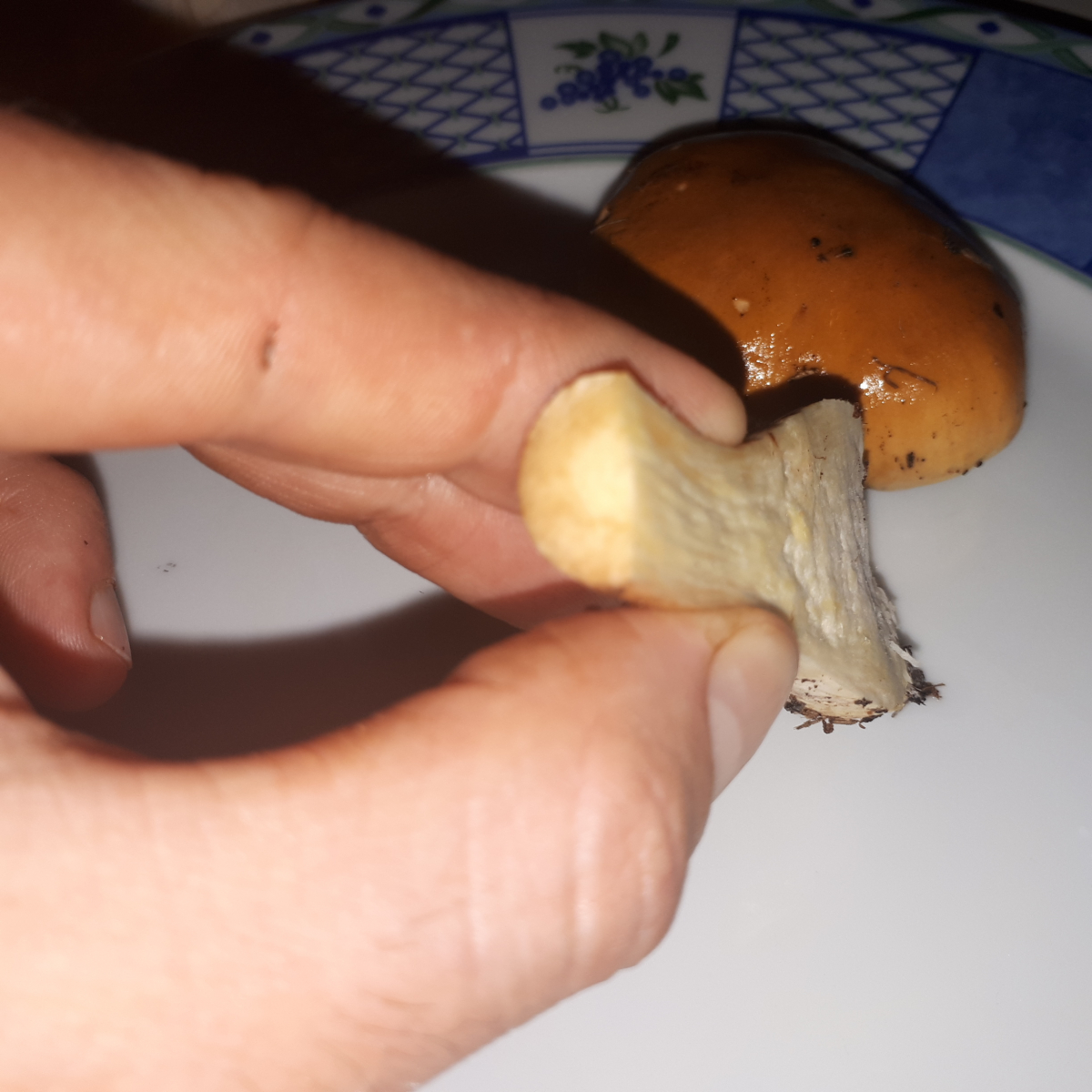ich würde hier C. anserinus ausschließen, da dessen Stielbasis gerandeter knollig ("Klumpfuß") und nicht so langgezogen keulig ("Schleimkopf") ist. Bei älteren C. varius kann sich das Fleisch durchaus einmal gelblich verfärben, so wie man das hier sieht. Größere Klarheit ergibt die KOH 20-Probe auf dem Fleisch: bei C. anserinus tut sich quasi gar nichts, es wird allenfalls ganz blass bräunlich so wie auf Pablos Foto zu sehen, bei C. varius wird es hingegen leuchtend gelb oder zumindest bräunlich mit leuchtend gelbem Tupfstellen-Rand.