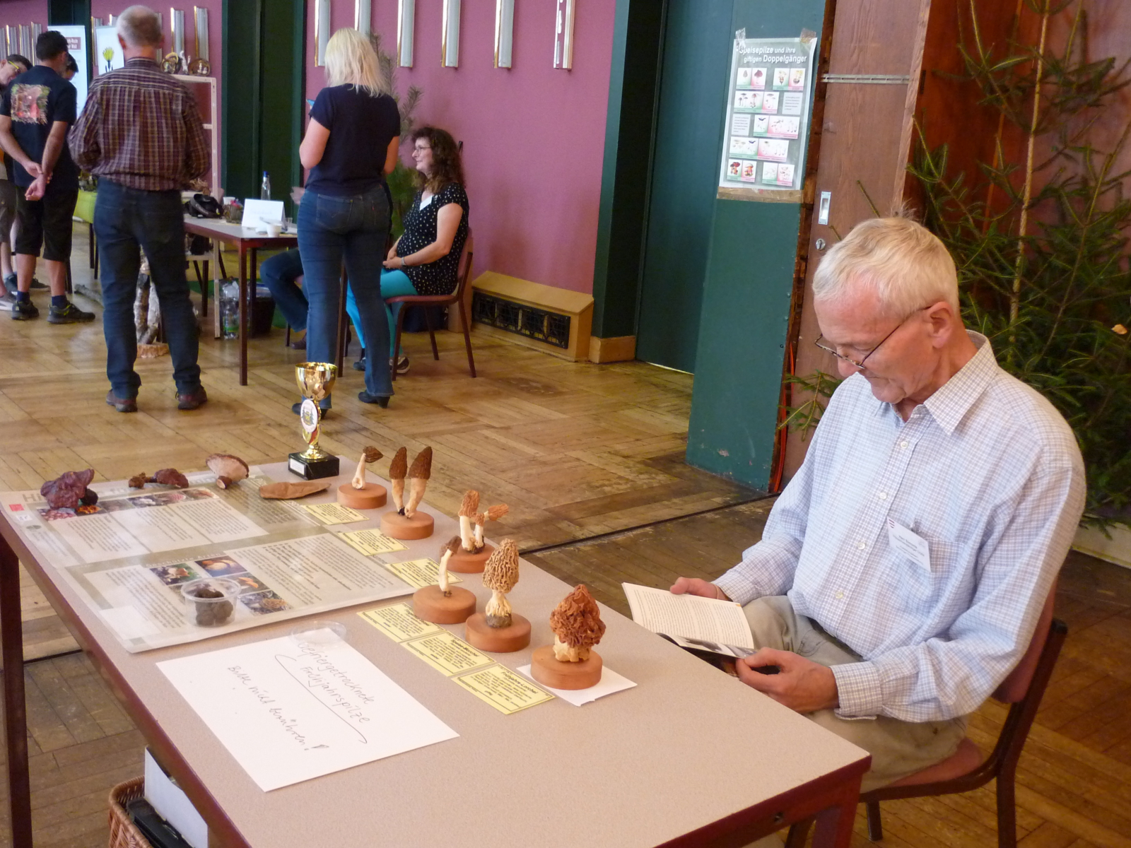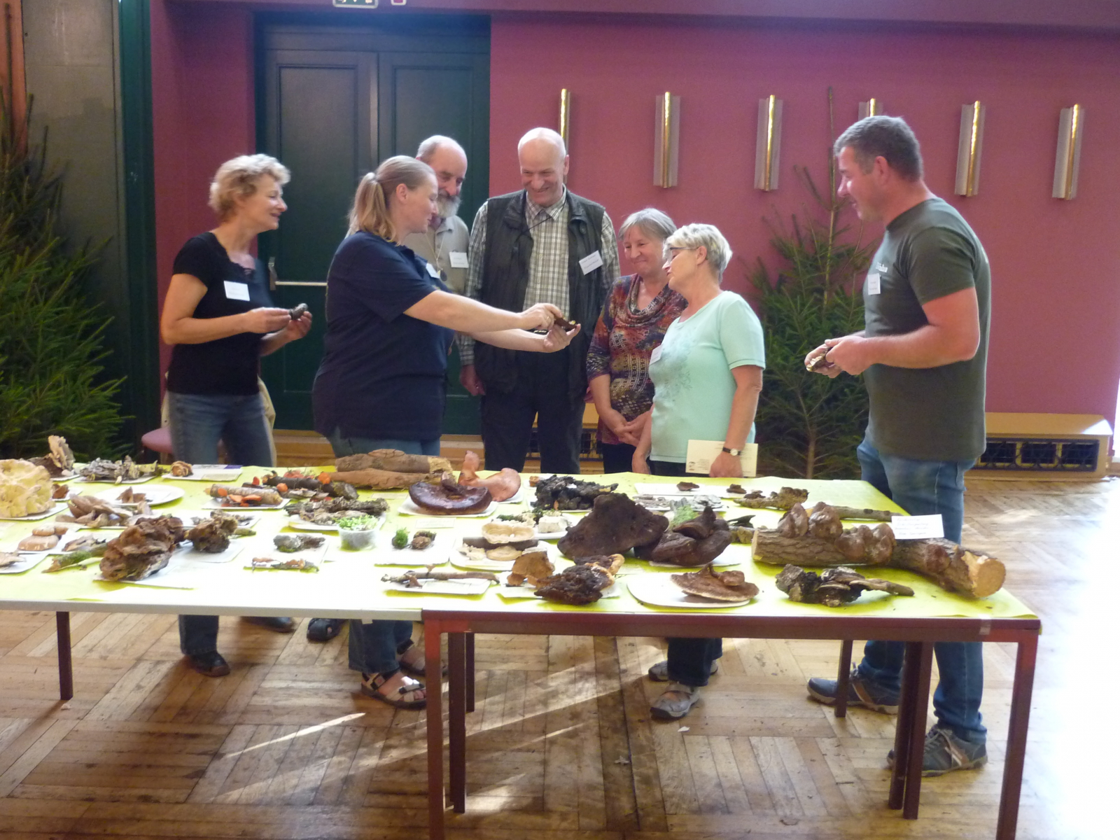 Natürlich sind bei der Landespilzausstellung auch jede Menge Experten und Expertinnen, die mitgebrachte Pilze bestimmen und Fragen beantworten, die man/frau schon immer mal beantwortet haben wollte.