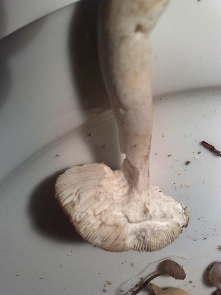 9+10:ich bin über einen Pilz gestolpert, der so ähnlich aussah und der Stiel innen hohl war. Fällt mir dummerweise nicht mehr ein...