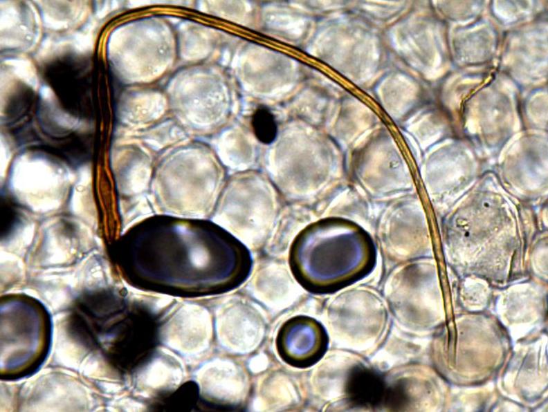 Stiel : weißlich , bis 8cm lang ,0,3cm dick , Basal nicht verdickt , hohl , brüchig.