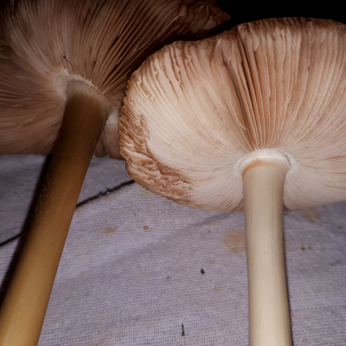 Ich habe heute auf dem gemähten Damm diese Pilze gefunden. Mein Pilzschlüssel führt mich zu den Rötelritterlingen. Von unten schaut er sogar wie ein Ritterling aus. Der Stil steckt in der Basis in einer Art Scheide. Habt Ihr eine Idee?