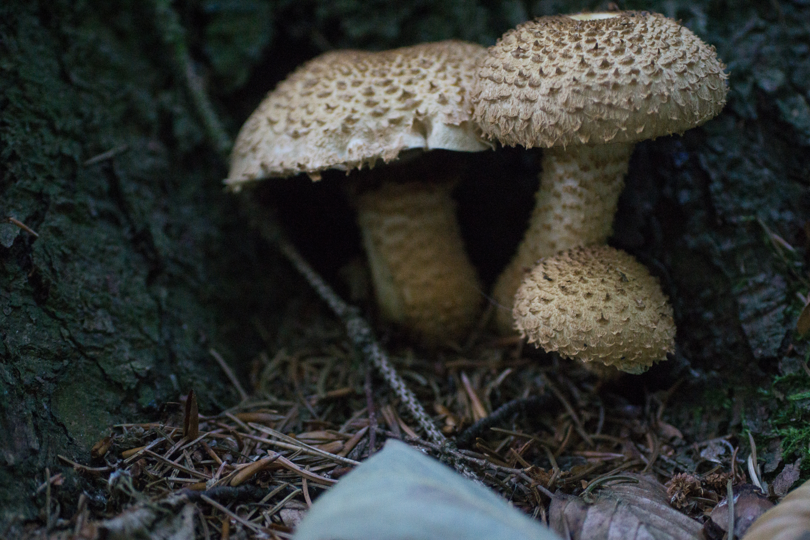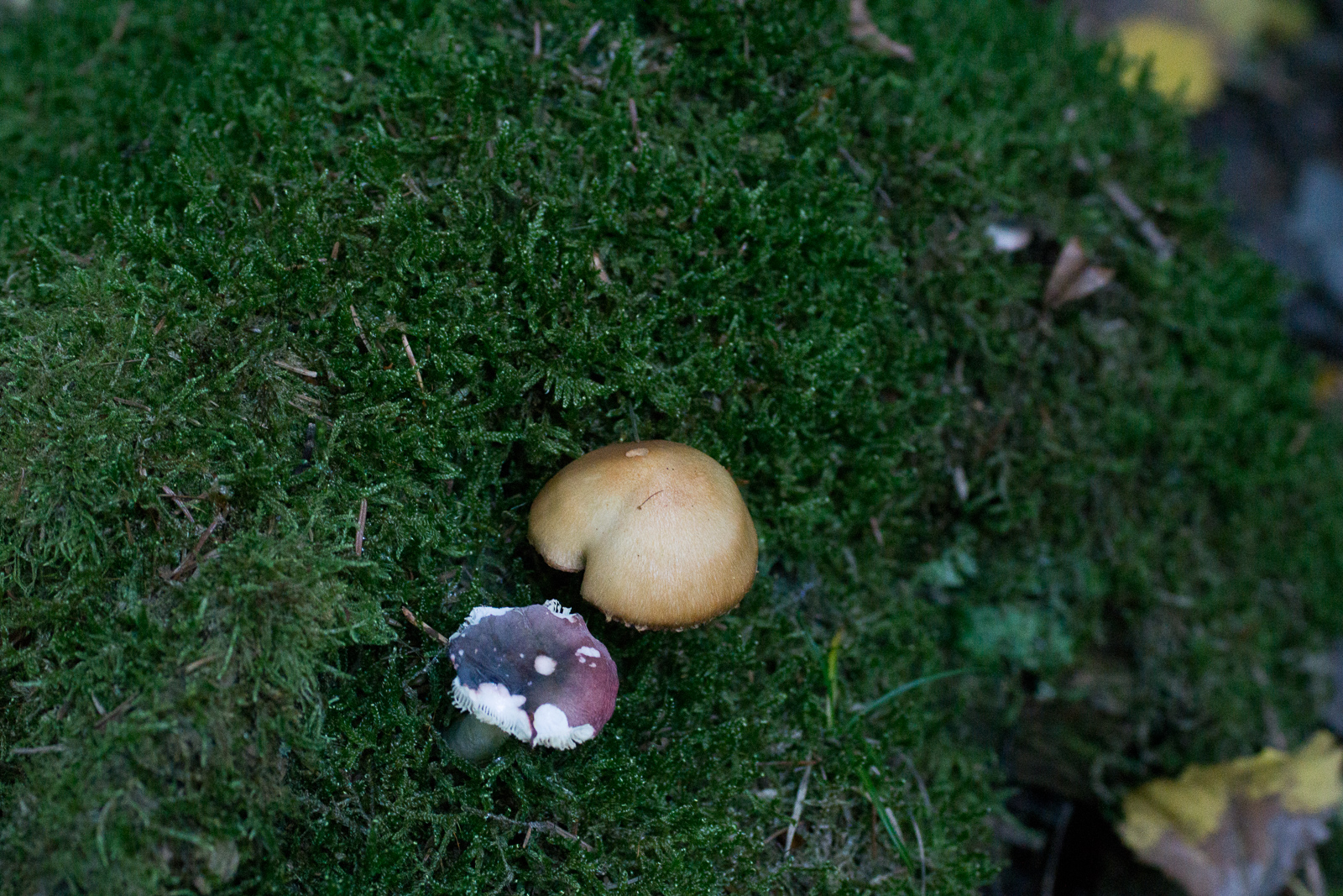 12. Dieses einzelne Stockschwämmchen hat sich's neben dem Täubling bequem gemacht um der Einsamkeit zu entkommen.