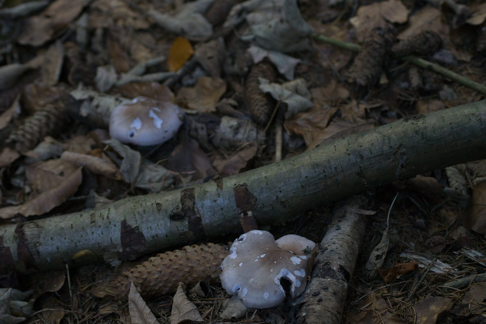12. Dieses einzelne Stockschwämmchen hat sich's neben dem Täubling bequem gemacht um der Einsamkeit zu entkommen.