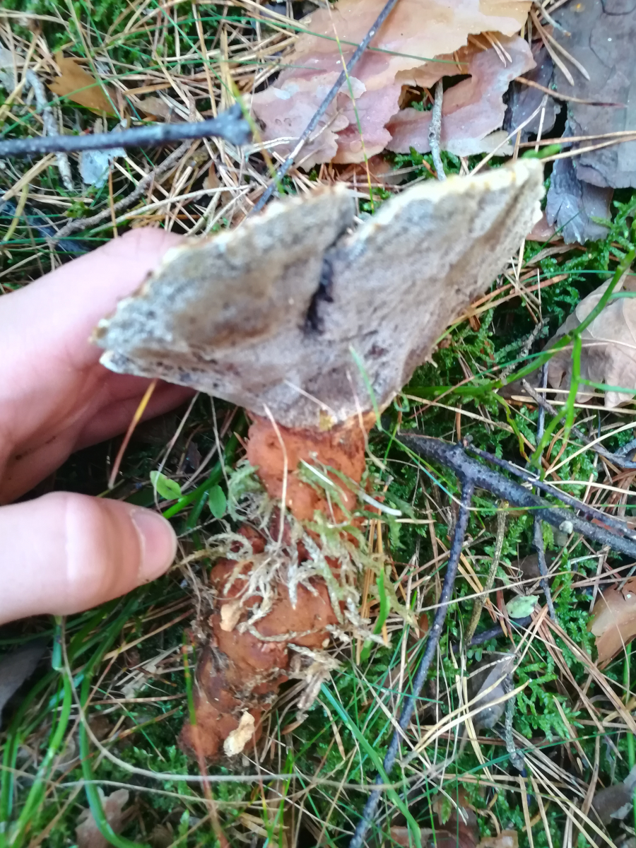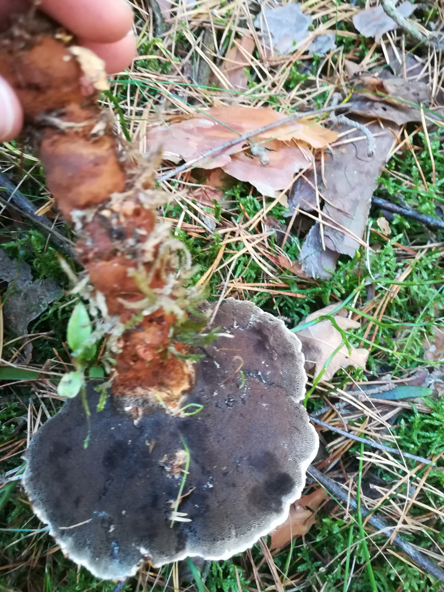 Gerade eben bei Roth an Wurzel einer Kiefer(?) diesen Pilz gefunden. Ich bin mir sicher, dass es ein Lackporling ist. Aber welcher???